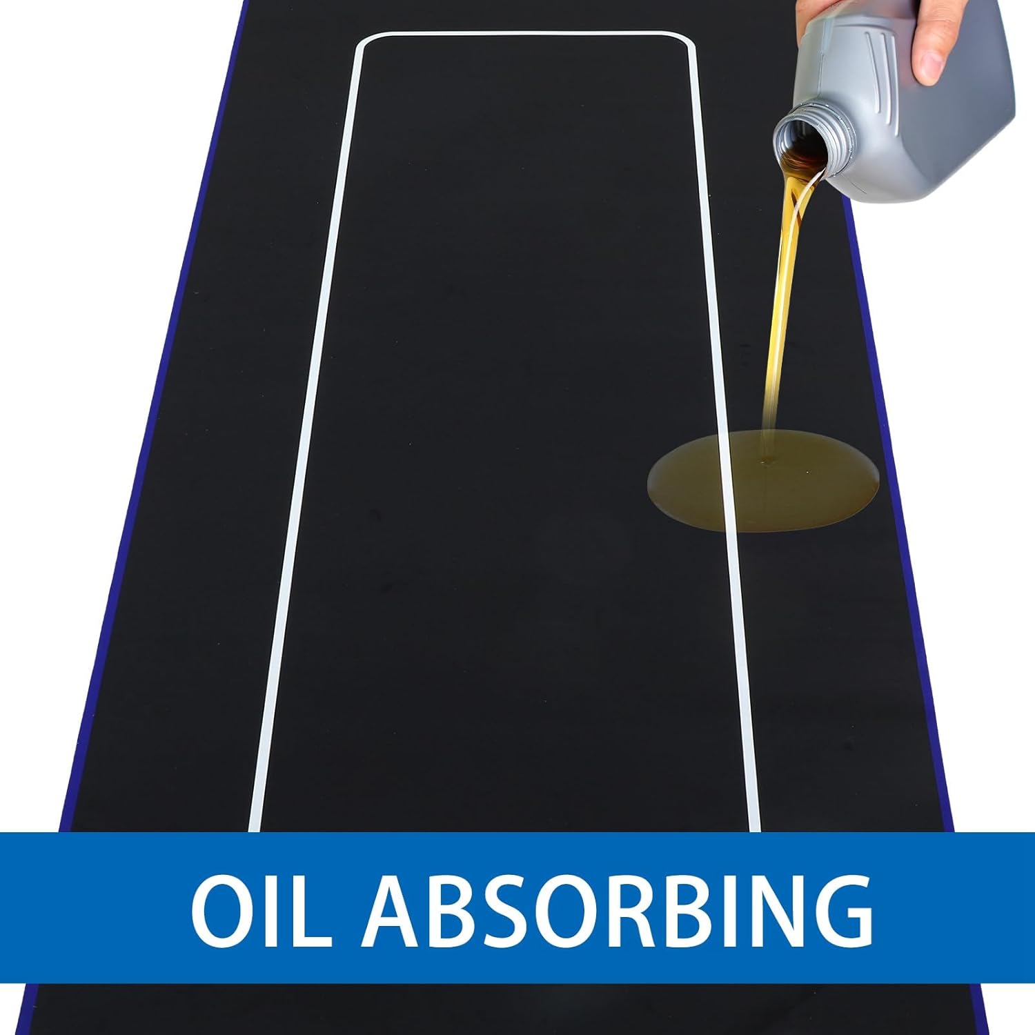 Motorcycle Mat 98 x 31 Inch Garage Floor Rug Washable Parking Mats for Garage Floors Non Slip Oil Absorbent Pad Rubber Backing Layer Protects Floor from Spills Drips Stains (Frame Style)