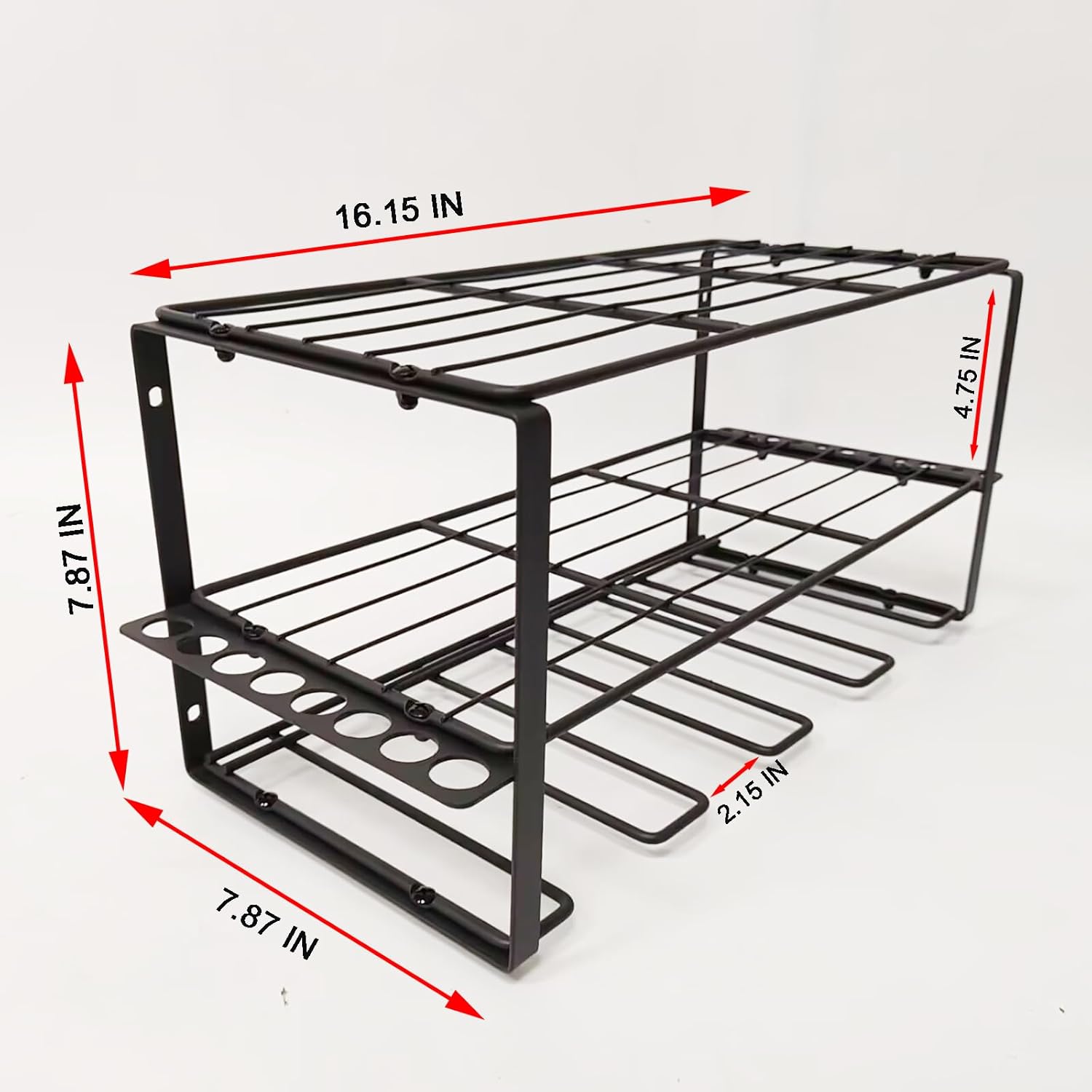 - [Heavy-Duty Tool Organizer Rack] — Built from a robust, fully welded steel frame with a rust-resistant, matte black powder-coated finish to prevent rust, chipping, and cracking for lasting strength and reliability.