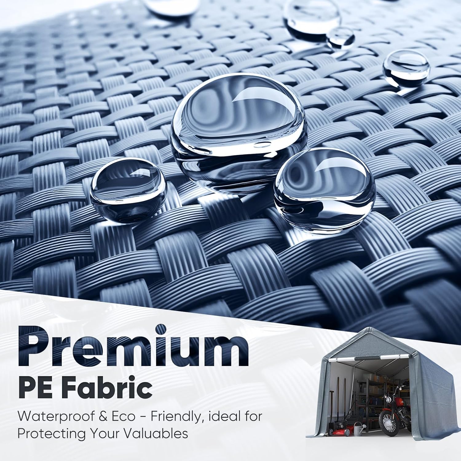 - 【Multiple Uses】This garden shed is perfect for storing motorcycles, lawn mowers, outdoor chairs, large umbrellas, bikes, skateboards, trash cans, generators and other items.