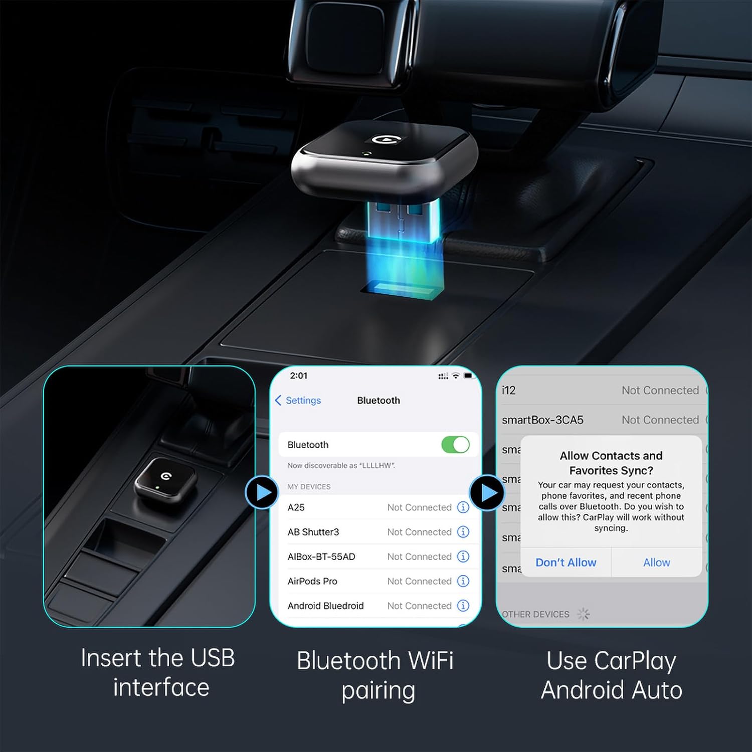 - [Guaranteed Compatibility]Works with 800+ car models (2016 or newer) and iPhones from iPhone 6 onward. Includes a USB-C adapter for universal port support. Exclusively for Apple devices—no Android compatibility