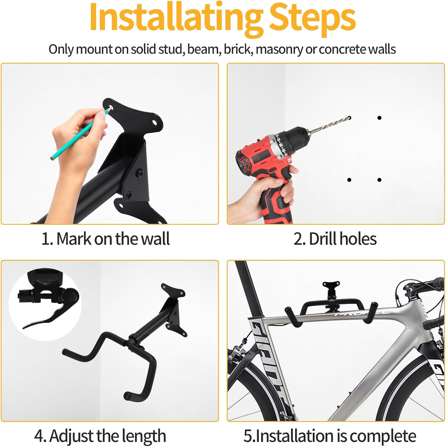 Bike Wall Parking Stand - Adjustable Horizontal Bicycle Storage Rack for Garage and Home - Metal Hook Holder for Road, Mountain, and Hybrid Bikes
