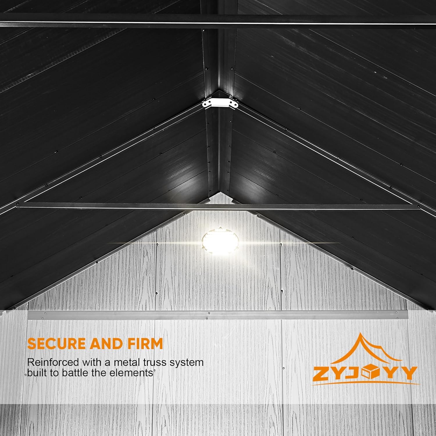 - Robust Double-Layer Floor : The double-layer resin floor provides strong support for heavy machinery and resists abrasion. This ensures your tools and lawn equipment remain protected and the shed stays stable on level grounds.