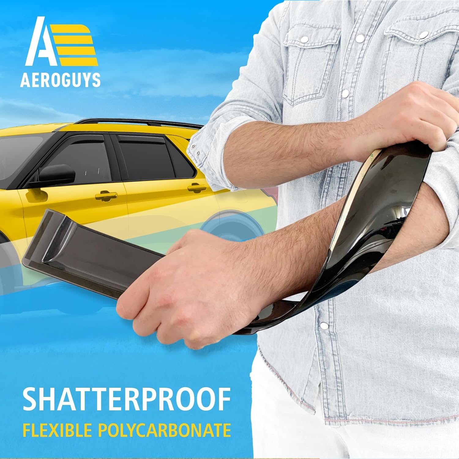 - Incredibly Durable AEROGUYS Auto Window Deflectors β They are made with strong and tough polycarbonate which is clear and scratch-resistant. They also provide UV protection making your ride more comfortable under all weather conditions.
