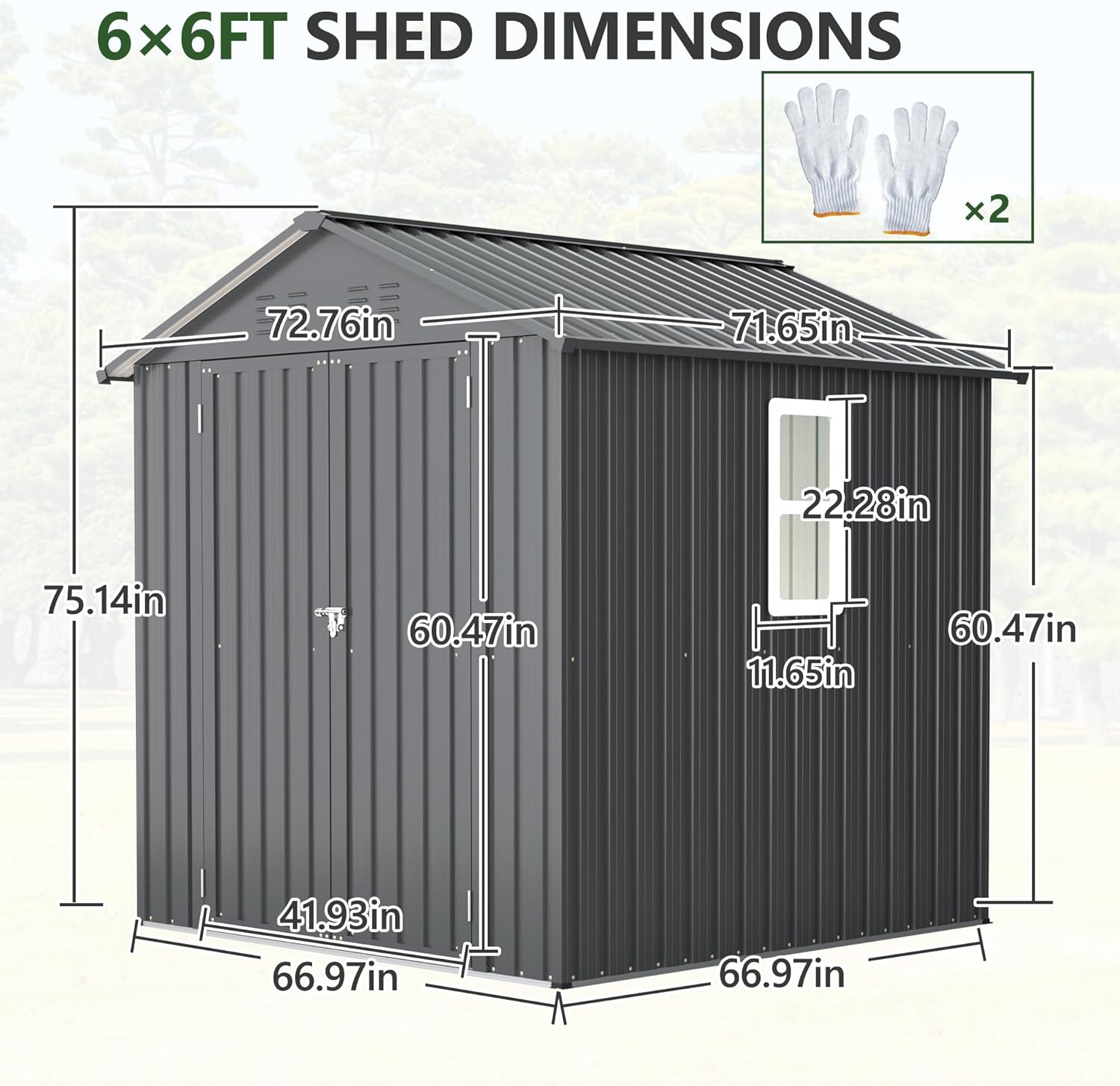 Outdoor Storage Shed, 6 X 6ft Metal Galvanized Steel Garden Shed with Floor Frame, Utility Tool Shed Storage House for Backyard, Patio, Lawn