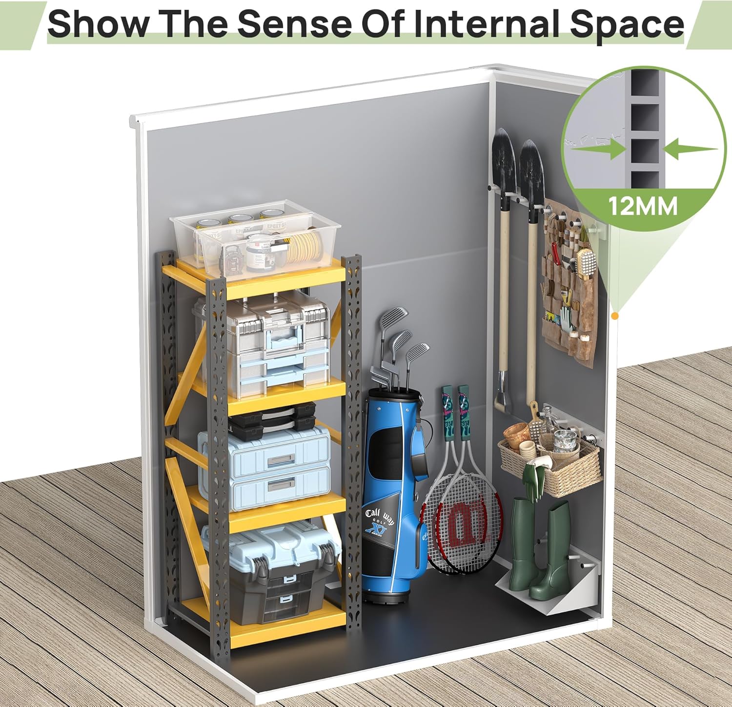- Recyclable resin material: Compare iron and wooden, resin shed is corrosion-resistant, waterproof, rustproof and with UV protection for more than 8000 hours. Our storage shed is crafted with 12 MM hollow design polypropylene resin plastic of recyclable, less bending and puncturing, all weather conditions for customers.