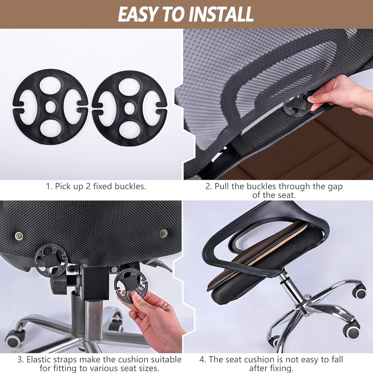 - Non-Slip Design: Bottom pad designed with anti-slip rubber, it will keep the seat cushion in the place, prevent the seat cushion falling off from your seat when you get in and out of the car. In addition, the plum buckles can enhance the stability of the seat cushion
