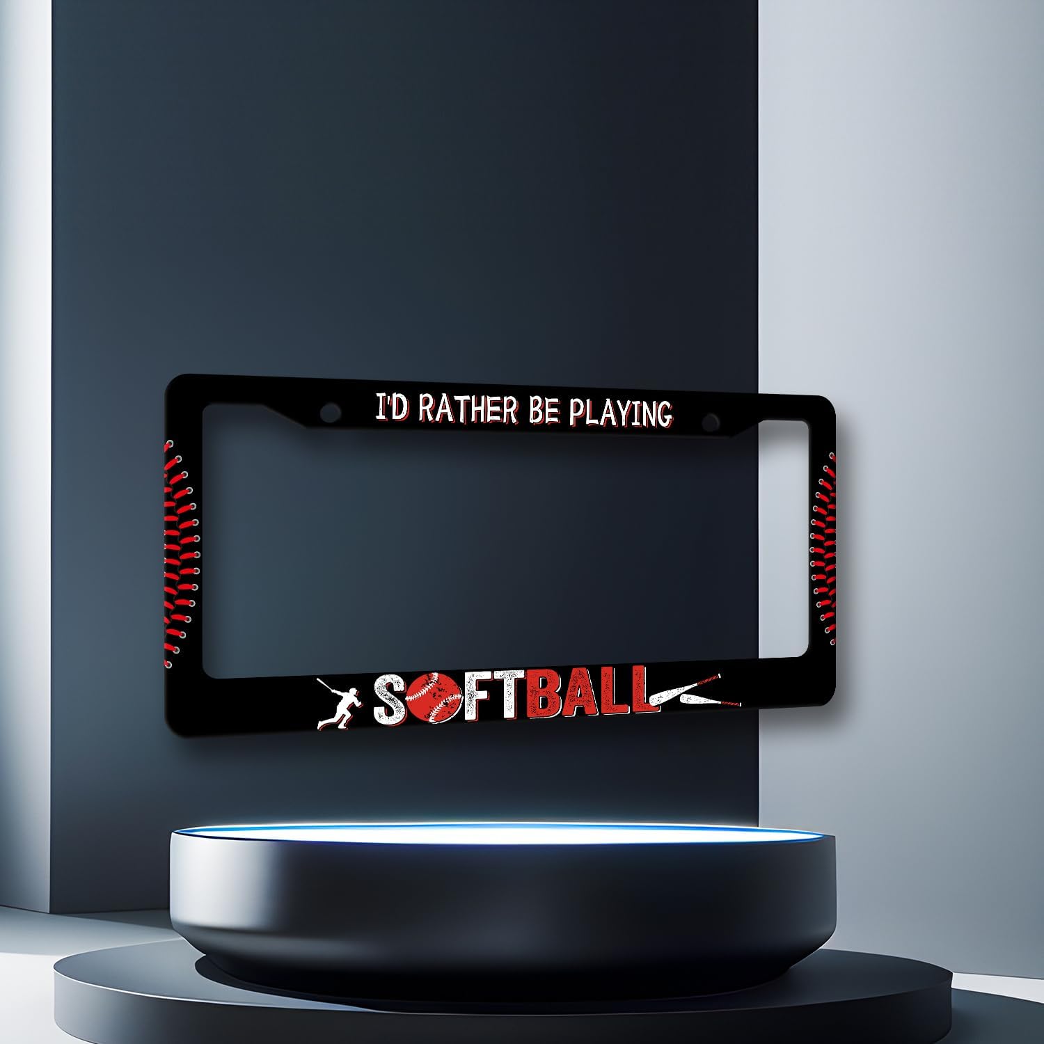 I'd Rather Be Playing Softball License Plate Frame Balls License Plate Stainless Steel Funny Black Accessories Cars Decor 12.2 X 6.2 Inch with 2 Holes and Screws Fits Standard Us Ca Vehicles