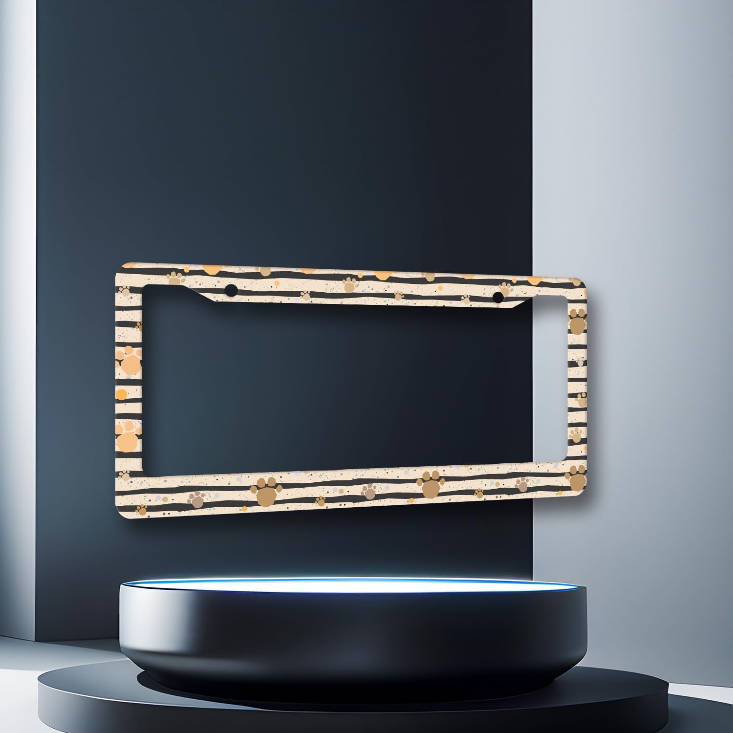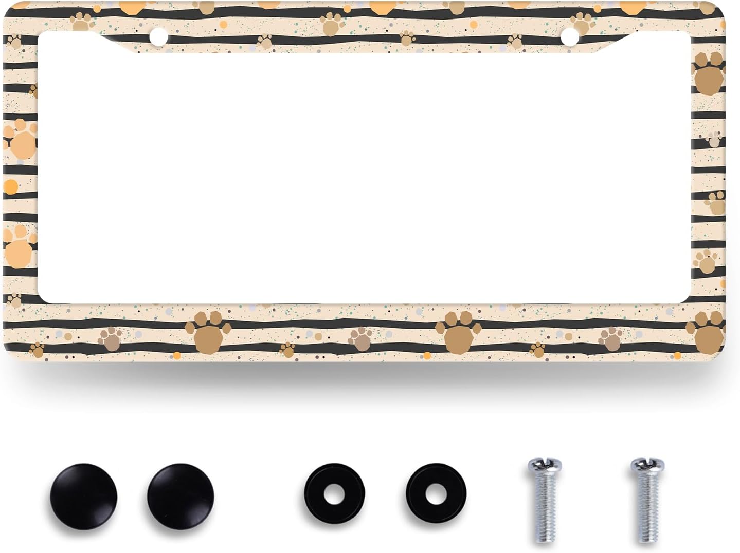 Vintage Dog Paws Prints License Plate Frame Animal License Plate Stainless Steel Dog Colorful Accessories Cars Decor 12.2 X 6.2 Inch with 2 Holes and Screws Fits Standard Us Ca Vehicles