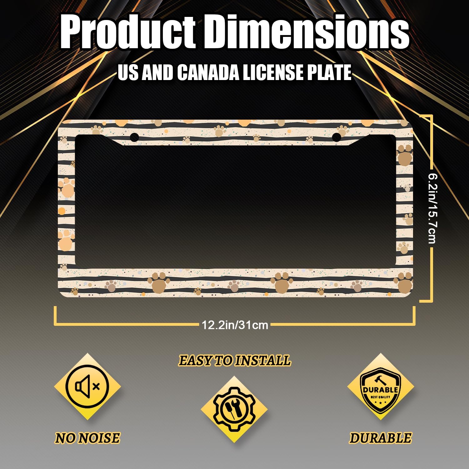 - Size: 12.2" x 6.2" , it fits all standard size US vehicle license plates.With compatibility, the stylish design frame fits on your car license plate.