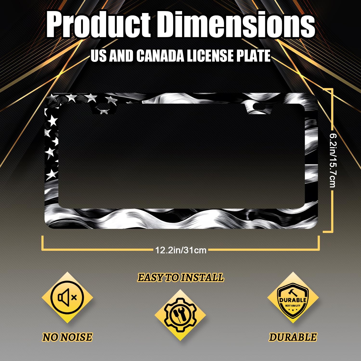 - Size: 12.2" x 6.2" , it fits all standard size US vehicle license plates.With compatibility, the stylish design frame fits on your car license plate.