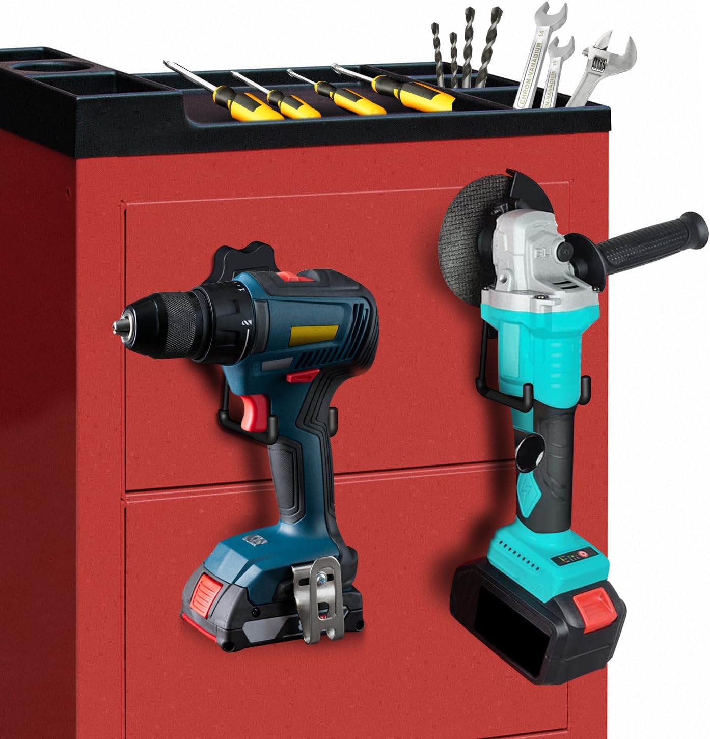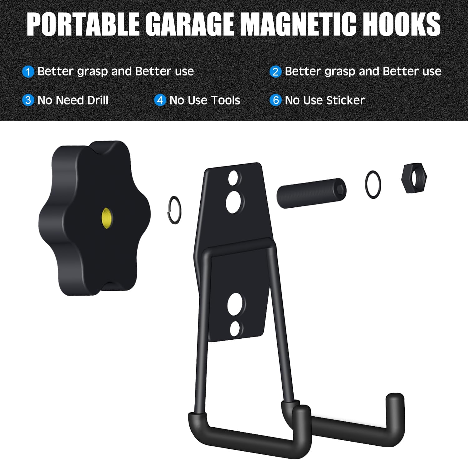 - PREMIUM STEEL HOOKS: This magnet utility hook has anti-rust coating and anti-slip PVC protection sleeve. Grab the garage tool equiment firmly and protect the item surfaces from getting scratching or marred well. Don't worry about your tools dropping again. Keeping your garage space neat and tidy.