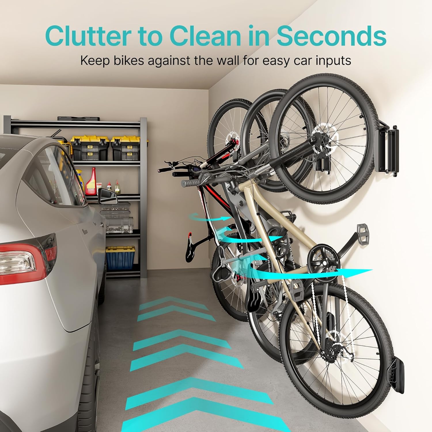 Bike Rack Garage, Bike Wall Mount Heavy Duty, Holds 77 Lbs, Swivel Bike Hangers for Garage, Adjustable Indoor Bike Storage for Bedroom Home Office, 4 Pack