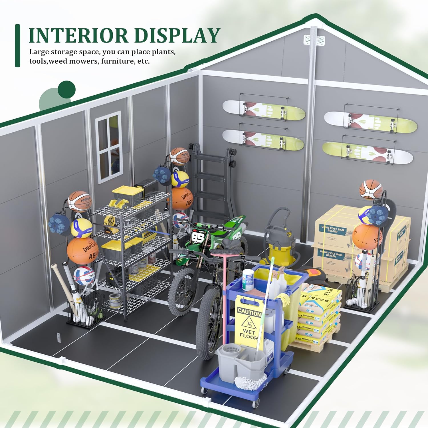 - đ ăSpacious & Versatile Outdoor StorageăThis generously sized outdoor storage shed offers ample space to store lawn mowers, bicycles, gardening tools, and storage racksâhelping to keep your backyard, patio, or lawn organized and clutter-free. Its flexible design also allows it to double as a ventilated pet house or a sunlit greenhouse, making the most of your outdoor area