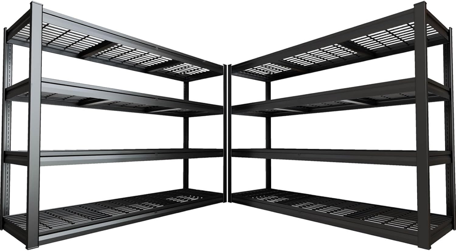 - ăHeavy-Duty Reinforced Metal ConstructionâăCrafted with extra-thick, widened, and hardened steel, this 4-tier garage shelving unit delivers unmatched durability for long-term storage. The all-metal build ensures robust support, ideal for heavy tools, equipment, and bulky items.