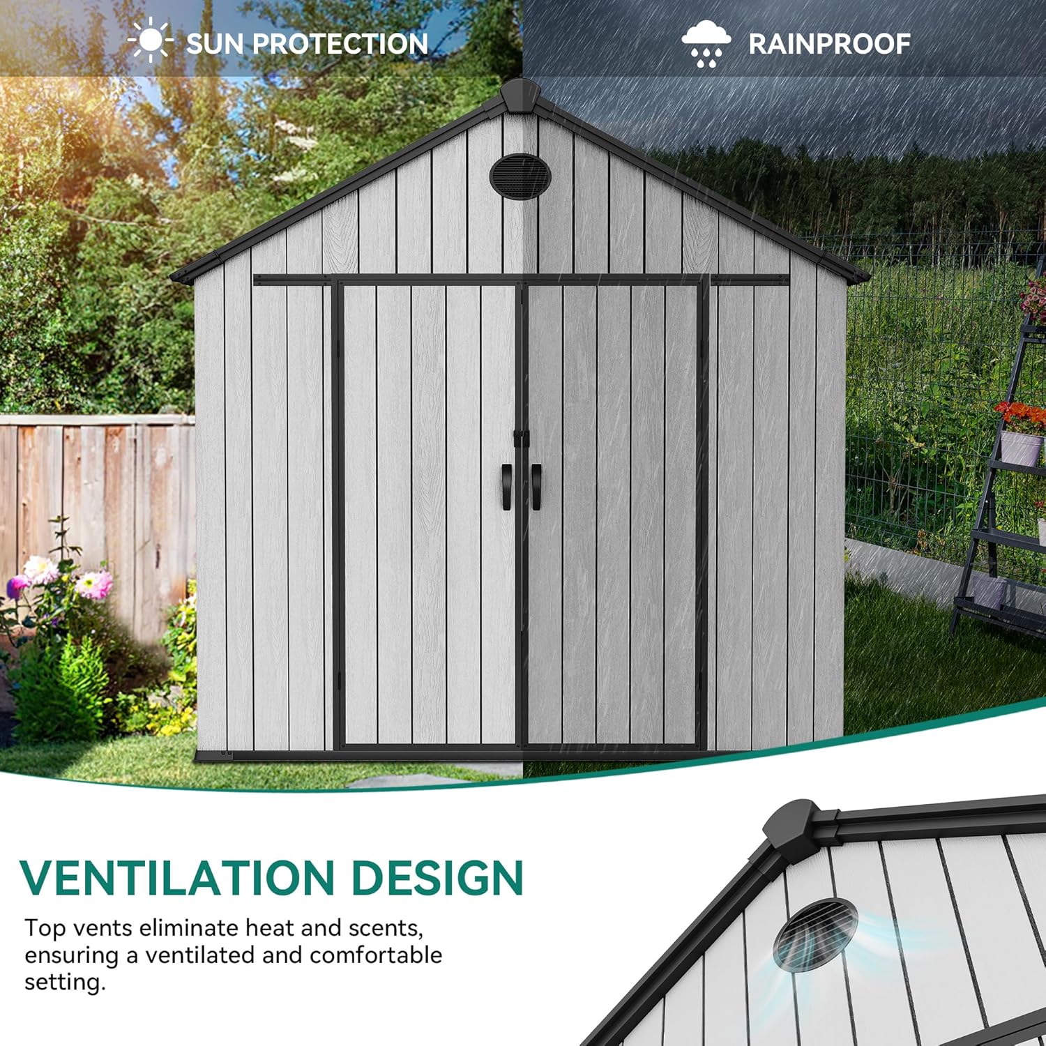 YITAHOME 8x10 FT Outdoor Storage Shed with Floor, Plastic Garden Shed for Bikes, Tools, Supplies, Waterproof Resin Shed with Lockable Doors, 2 Windows & 2 Vents for Patio, Backyard, 556 cu. Ft., Gray