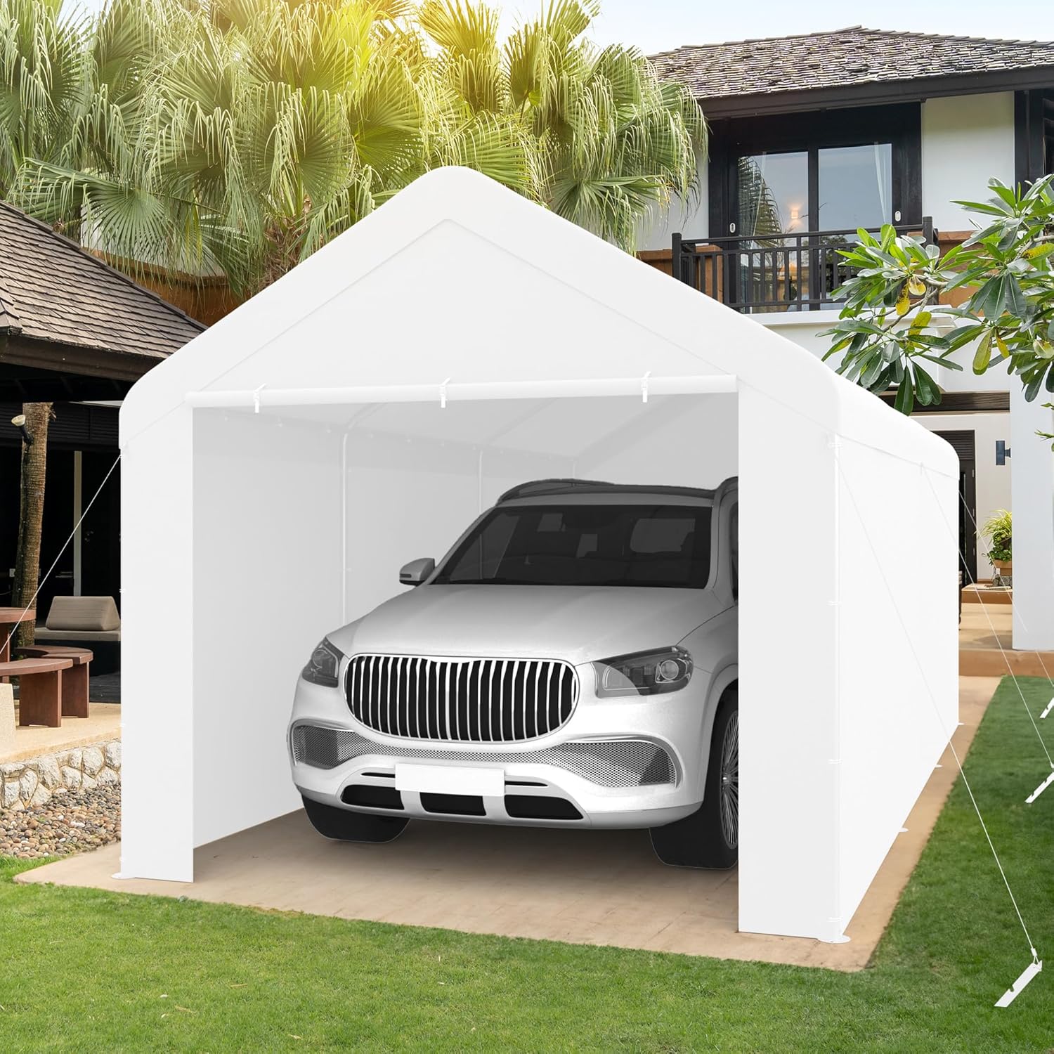 Carport 10x20 Heavy Duty Portable Garage w/Removable Sidewalls & Roll-Up Door Car Canopy Party Tents Waterproof UV Resistant All Weather Car Port for Trucks,Boats (White)