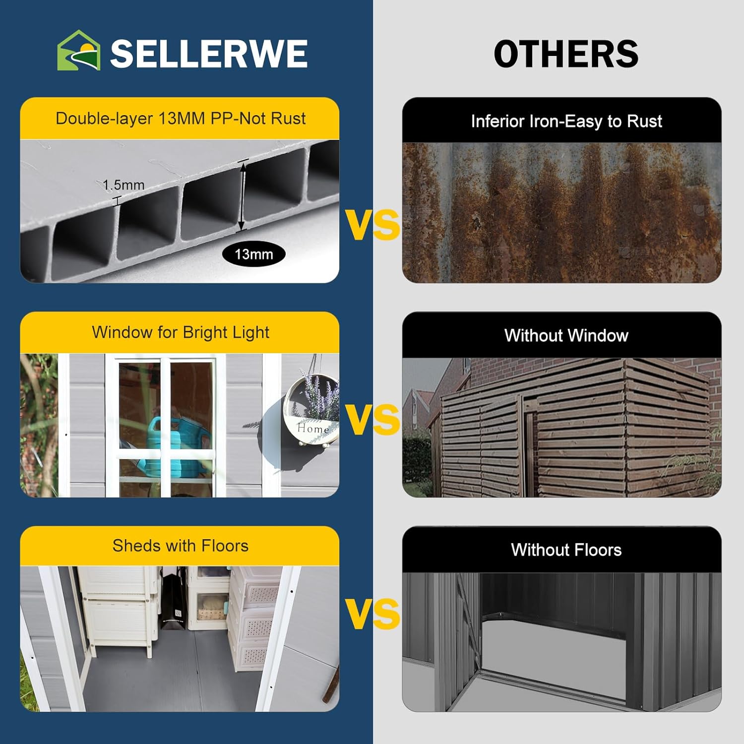 - 🏡[SELLERWE PROMISE]: The warranty period is 12 months from the date of sale. Upon delivery, a complete set of instructions is provided, and each part is labeled with detailed instructions, similar to building blocks, to greatly reduce installation difficulty and time. Please note: Installation requires a level and hard surface (concrete or wood is recommended). If you have any questions, please feel free to contact us.