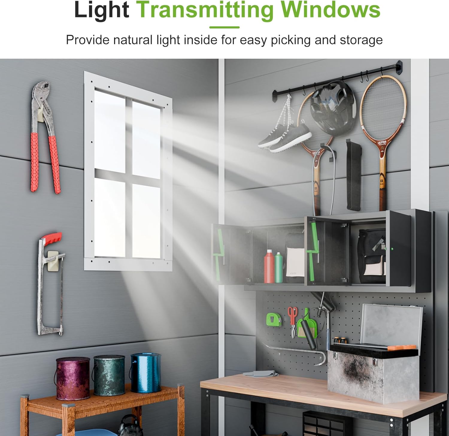 - 🏠LIGHT & AIRY: The lean to shed has a spacious window and a transparent top panel allow natural light inside for easy picking and storage. The sloping roof not only increases storage space but also allows rain and snow to drain quickly to prevent rusting from rainwater gathering. Multiple vents of the shed help to ventilate the room, preventing the shed from getting mouldy and keeping items dry.