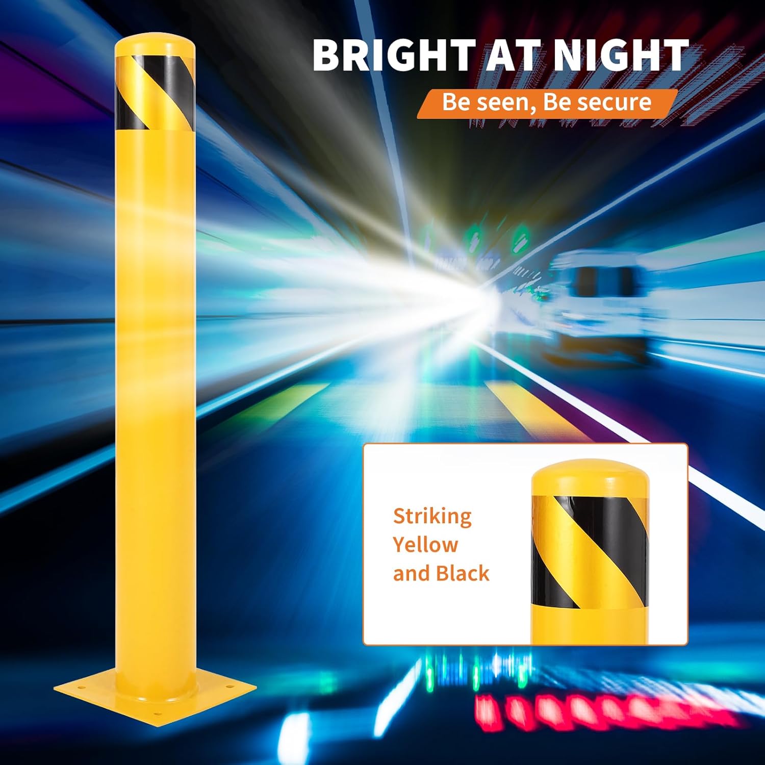 4.5x42 Inch Safety Bollard Post - Yellow Steel Bollard with Anchor Bolts (6-Pack) for Parking Lots, Walkways & Traffic Areas