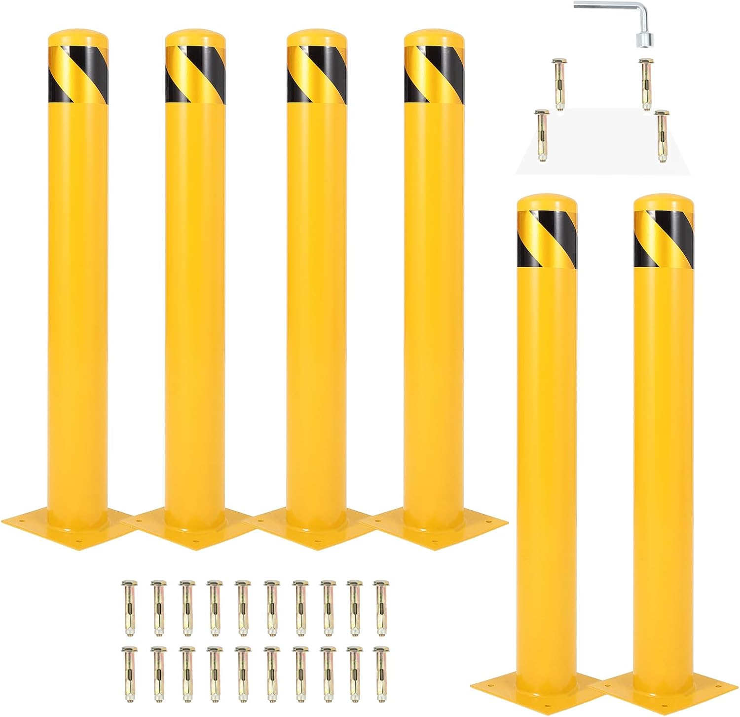 4.5x48 Inch Safety Bollard Post - Yellow Steel Bollard with Anchor Bolts (6-Pack) for Parking Lots, Walkways & Traffic Areas
