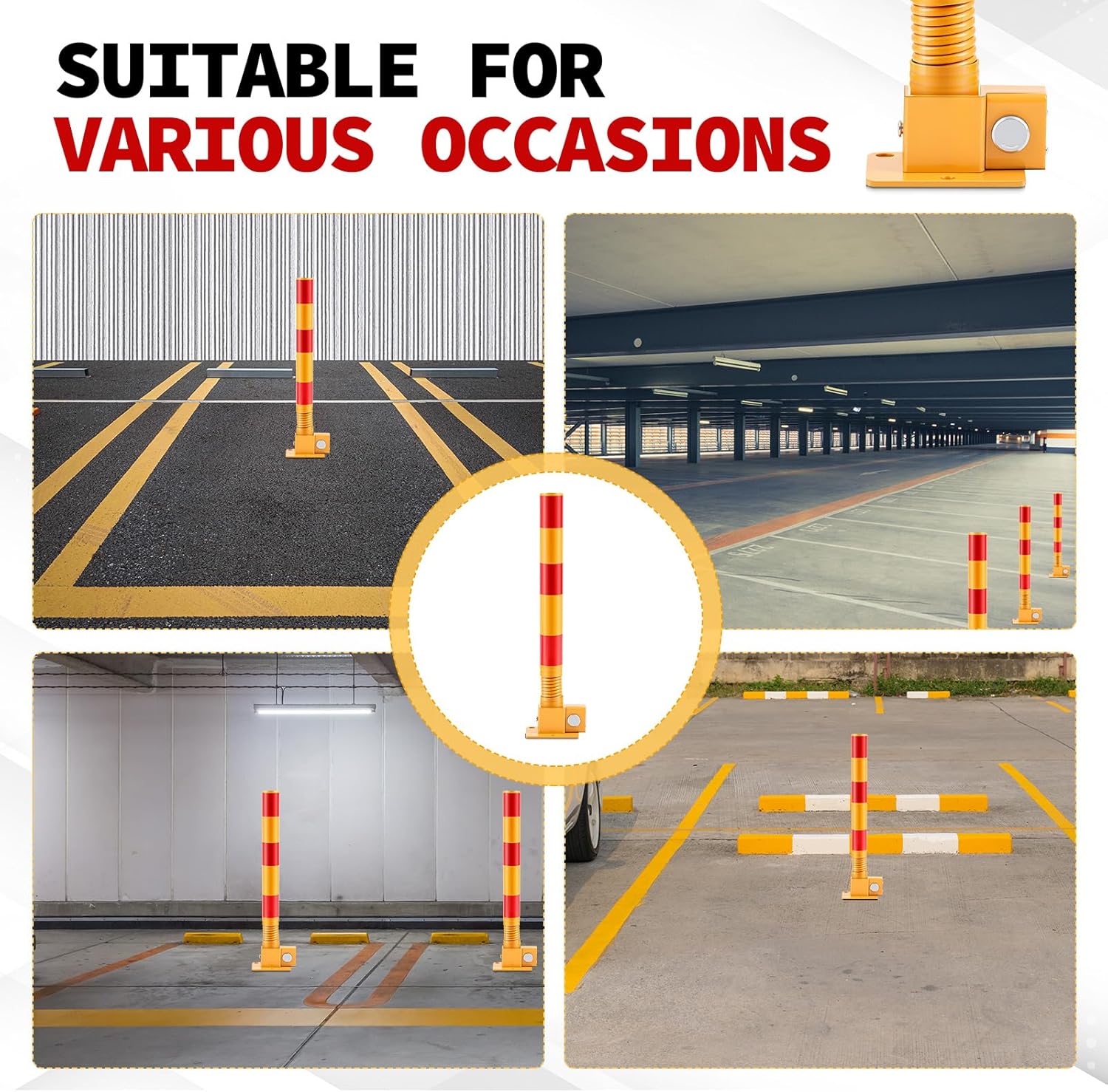 - Universal Application Across Diverse Locations: the Spring Parking Post Folding is designed to be functional and can be seamlessly applied to a range of settings including driveways, garages, parking lots, front yards, and private parking spaces; Its adaptability ensures that it meets the needs of different environments and scenarios, making it an ideal choice for a wide spectrum of users