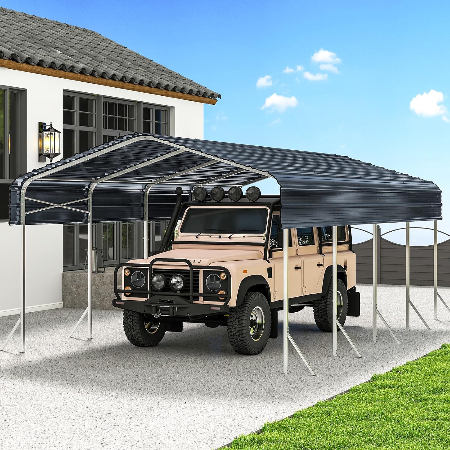 Heavy Duty Metal Carport – Sturdy Structure, All-Weather Protection, Easy Assembly for Cars, Trucks, Boats, Tractors, and Outdoor Storage (Gray, 12X20 FT)