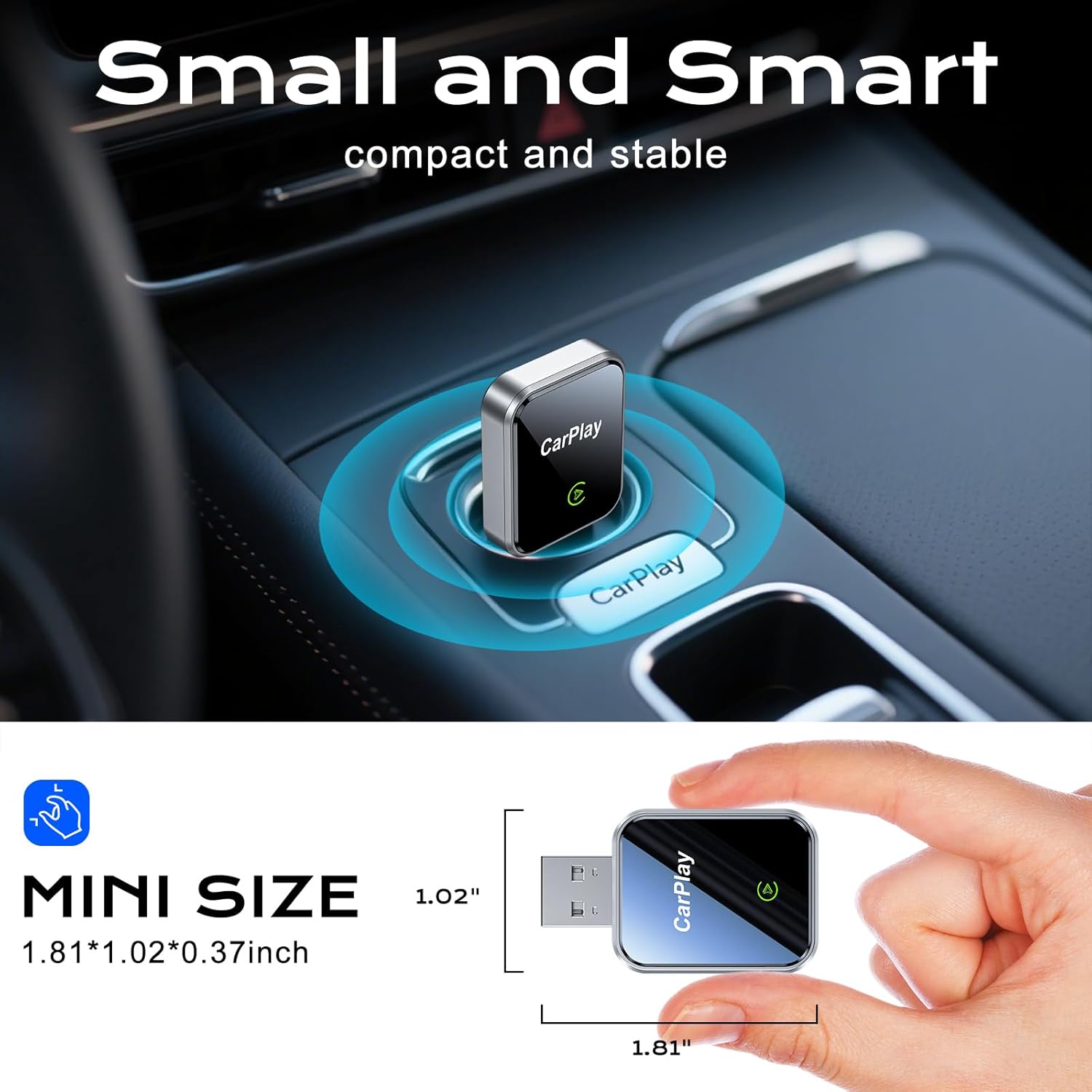 - Easy To Use And Enjoy The Smart:Easily upgrade wired CarPlay to wireless and experience the freedom of wireless CarPlay.You can voice wake-up:Siri,navigate,Calls,and enjoy your favorite music with superior wireless connectivity.Experience the power of AI intelligent connectivity because our wireless apple carplay adapter equipped with the latest 5.8 GHz WiFi, Bluetooth 5.3, and a most powerful and latest chip