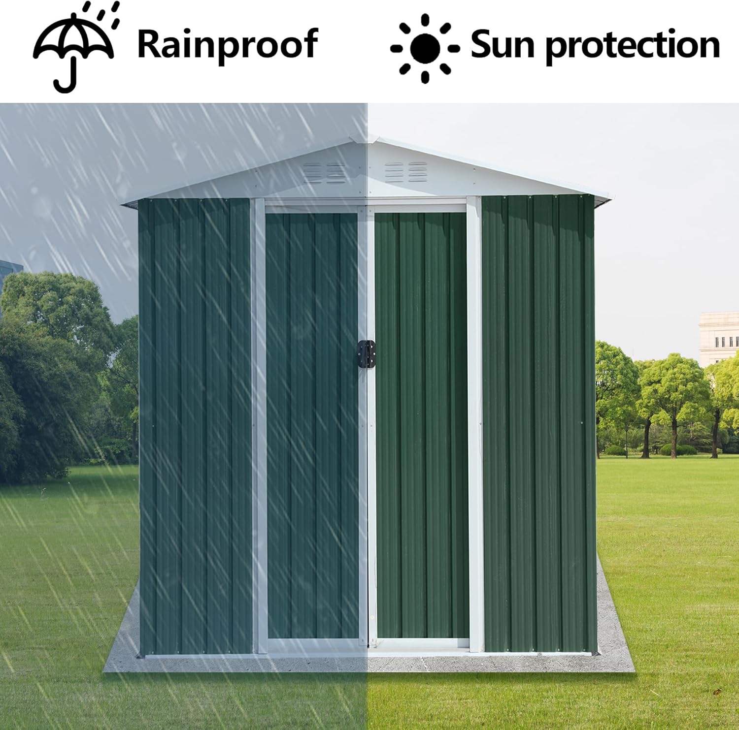6x4 FT Outdoor Metal Storage Shed, Waterproof Outside Garden Sheds w/Lockable Sliding Doors and Vents, Weather Resistant Steel Tool Storage House for Backyard, Patio, Lawn, Green