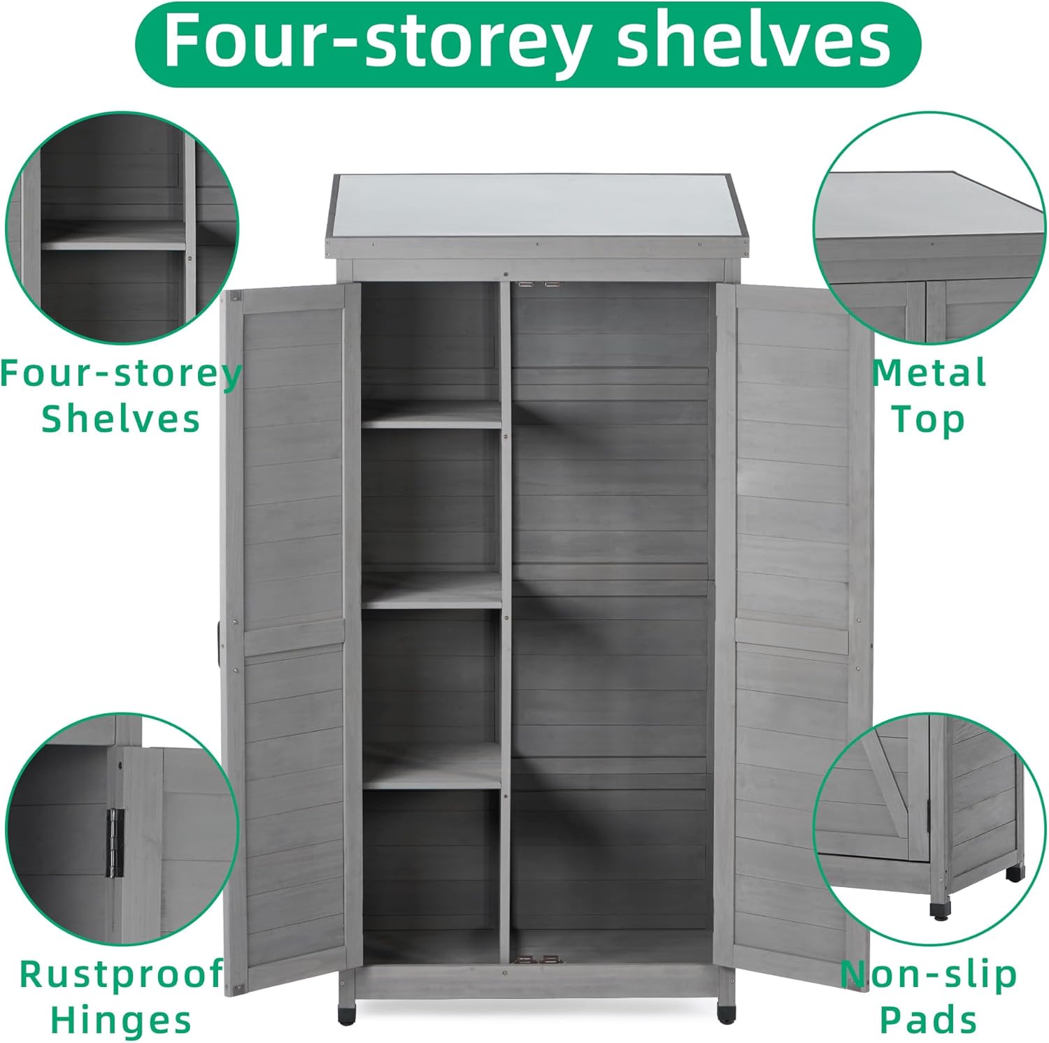 - Versatile Outdoor Use: This stylish storage shed is perfect for organizing tools, potting plants, or even as a decorative piece in your yard, patio, or balcony. It's an ideal solution to Keep Your Yard Tidy with Our Gray 68 Inches Tall Outdoor Storage Shed.