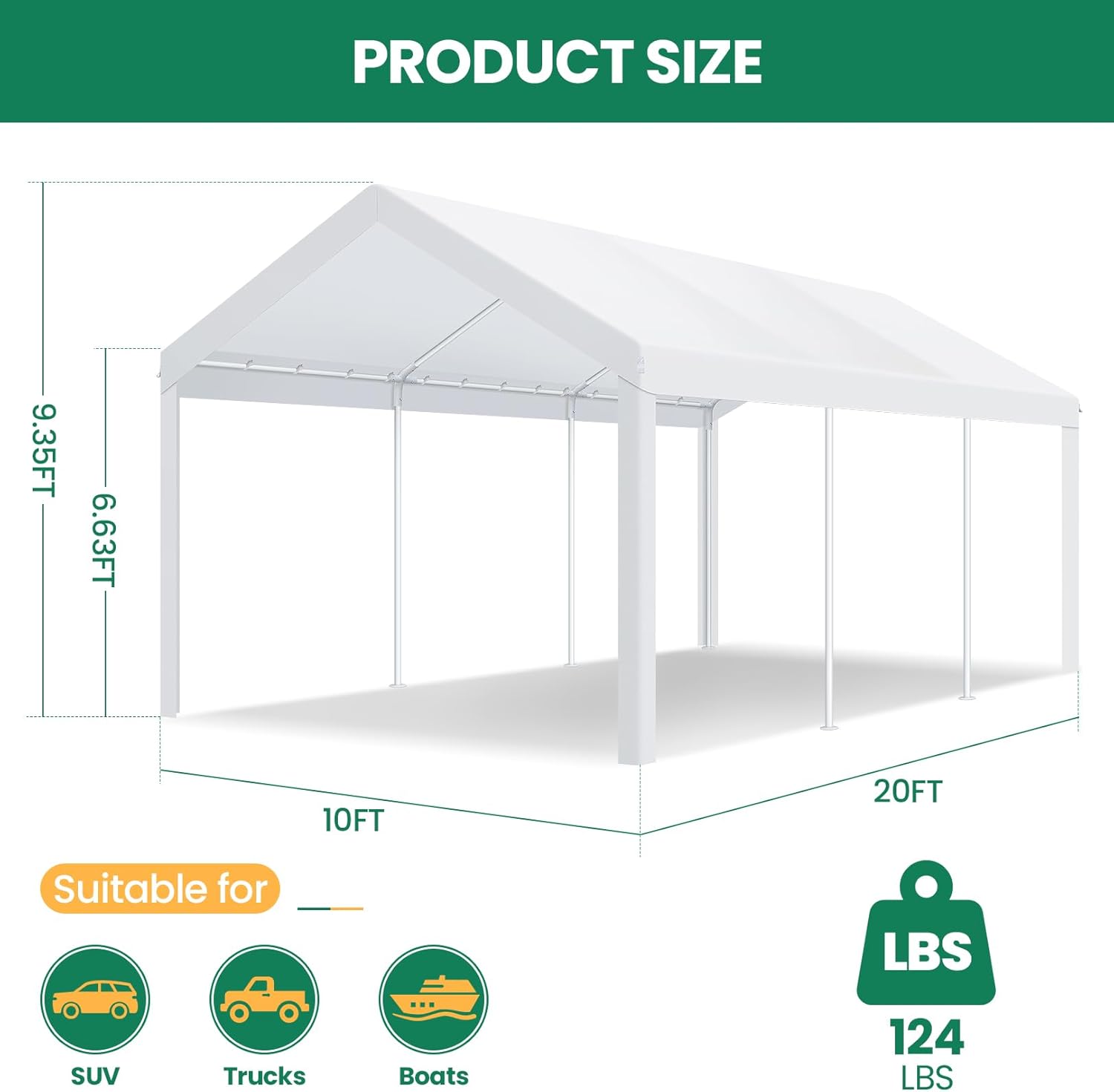 - 【Easy Setup】 12x20 heavy duty carport comes with protective packaging and an easy-to-follow manual, allowing two people to set it up in under an hour. For any installation or usage inquiries, feel free to contact us.