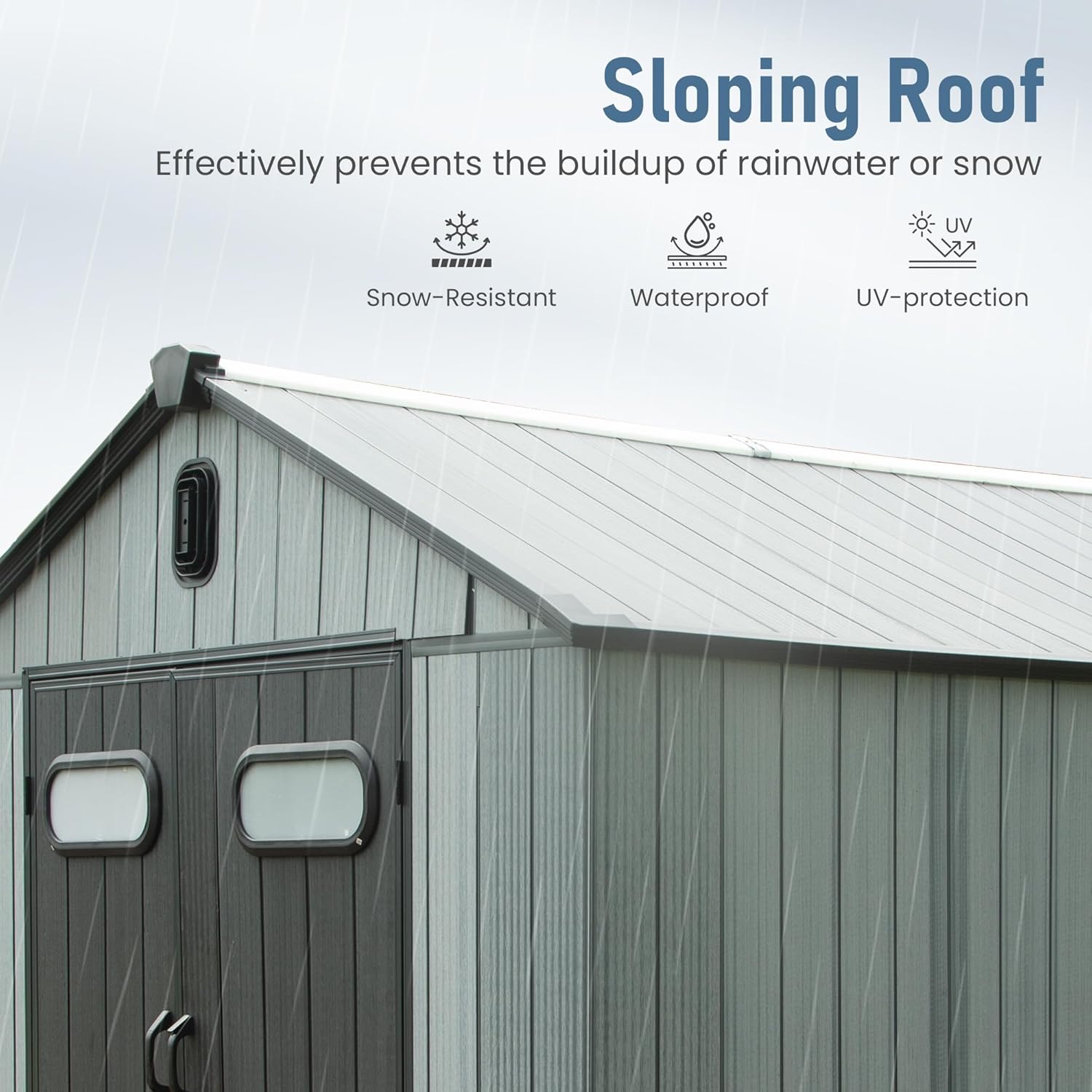 Domi 8x6 FT Outdoor Resin Storage Shed, All-Weather Double-Wall Storage Building for Backyard, Garden, Lawn Tools, Mower, Bike & Pool Equipment, Lockable Doors, Ventilated Roof, Grey