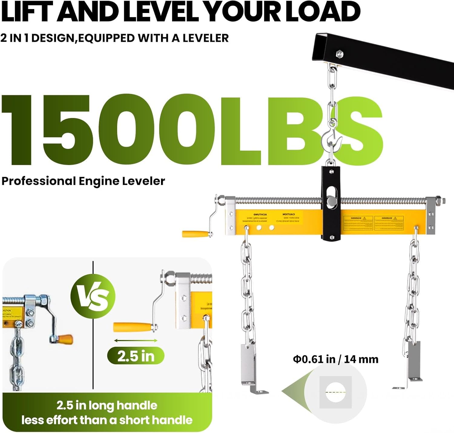 - 【4400 lbs Capacity】Our 2-Ton Engine Hoist effortlessly handles heavy loads, with a 4400 lbs max capacity. Ideal for lifting engines, transmissions, and heavy equipment, it offers reliable performance in garages, workshops, and construction sites.