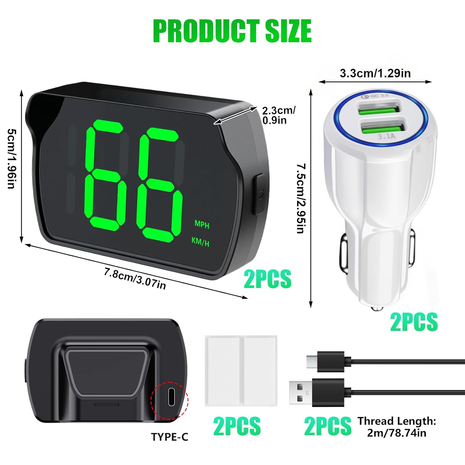 GPS Digital Speedometer for Car MPH, Universal HUD Speed Meter with LED Large Font, Plug Play for Car Truck Motor SUV Golf Cart All Vehicles (2 Pack Digital Speedometer with Charger)