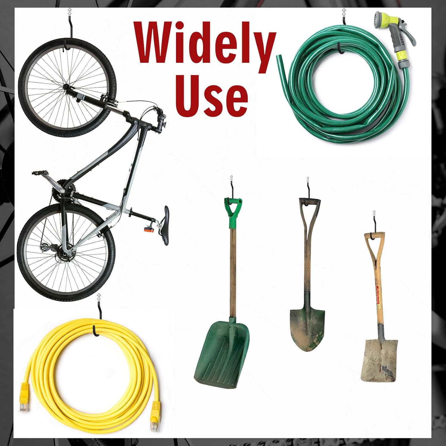 - Versatile Application: our bicycle storage hooks are ideal for hanging bikes and wheels up and out of the way in a garage, storage shed, or bike shop service area; Storage Hooks are sized to fit most standard tire sizes; The machine thread storage hooks aren't just for bicycles; They're suitable for hanging ladders, garden tools, and sports equipment too; Their robust construction make them an essential part of most comprehensive storage solution