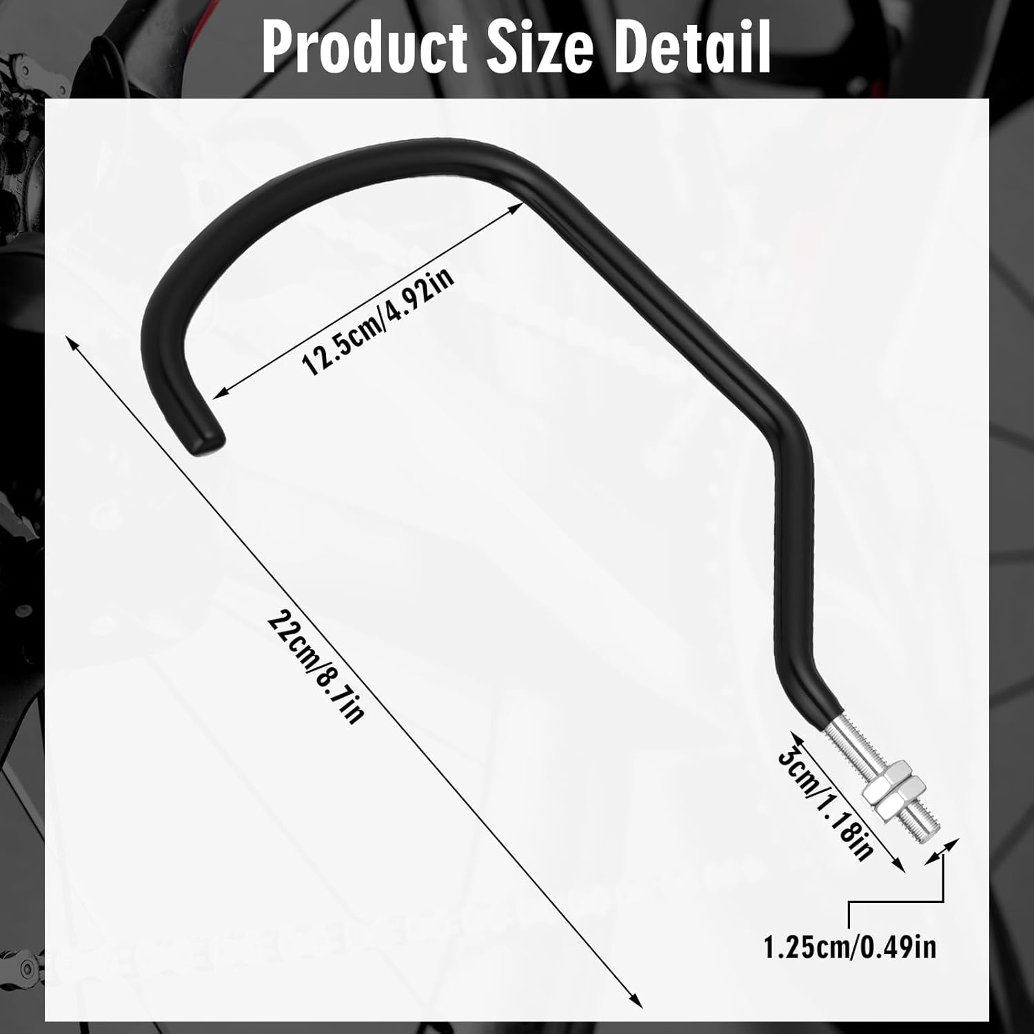 - Built to Last: crafted from robust 9 mm steel rod, these 4 pack bike hooks offer unmatched strength and durability; The inner width of the bend is about 4.92 inches; Designed to support bicycles of various sizes and weights, they're ideal for both home garages and commercial storage