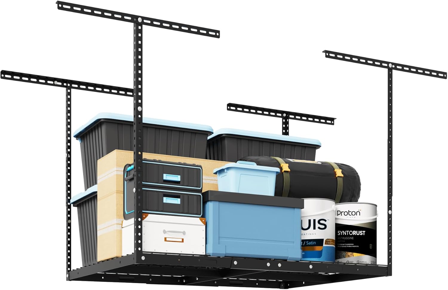 FLEXIMOUNTS 2x3FT Garage Storage Rack Overhead, Adjustable Ceiling Storage Racks, Metal Garage Organization System with 155LBS Weight Capacity(Black)