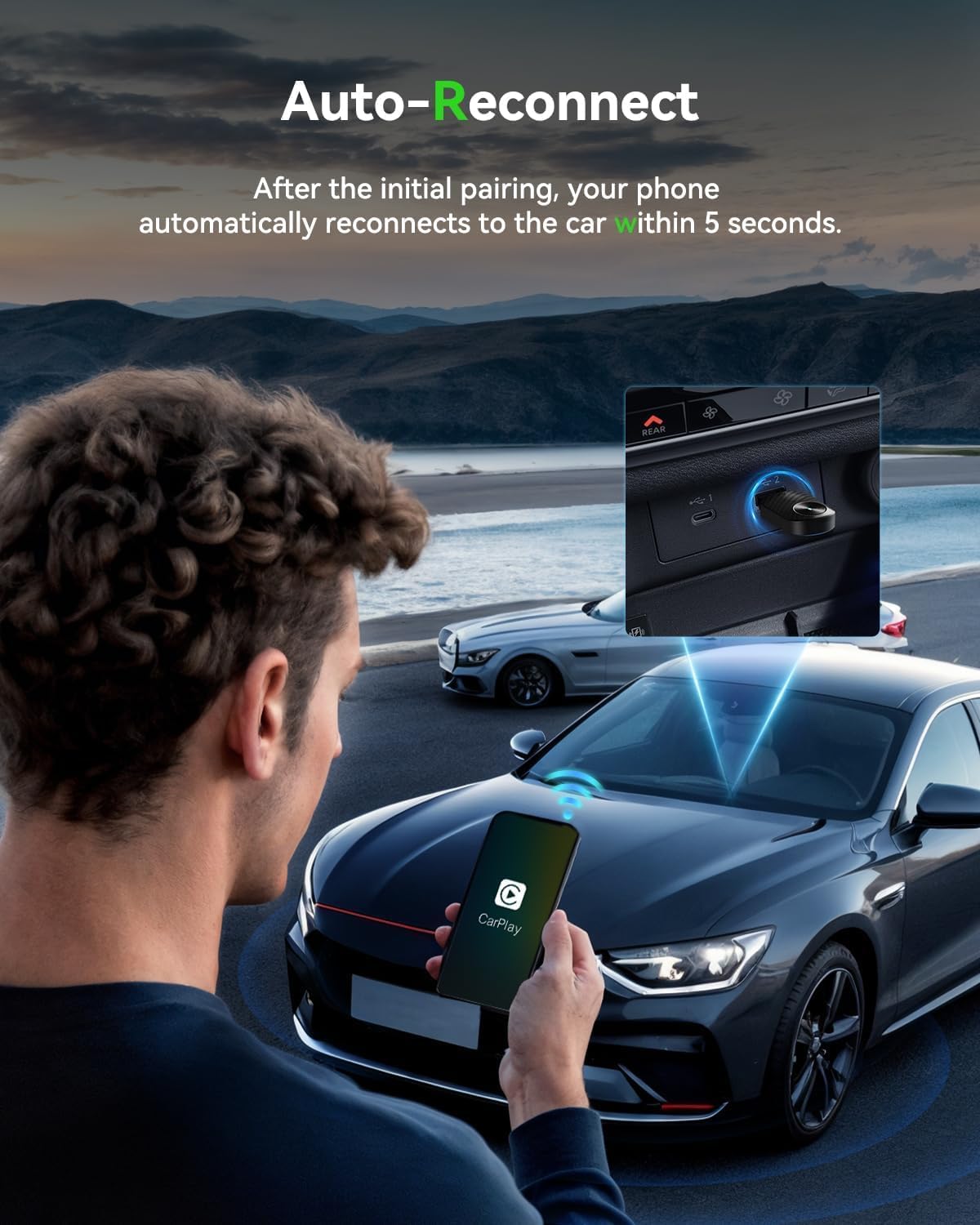 - đSeamless Auto-Reconnect Function â Set it up once, and this wireless Android Auto and CarPlay adapter for iPhone will automatically connect every time you start your car. No manual pairing, no waitingâjust instant, uninterrupted wireless access from ignition.