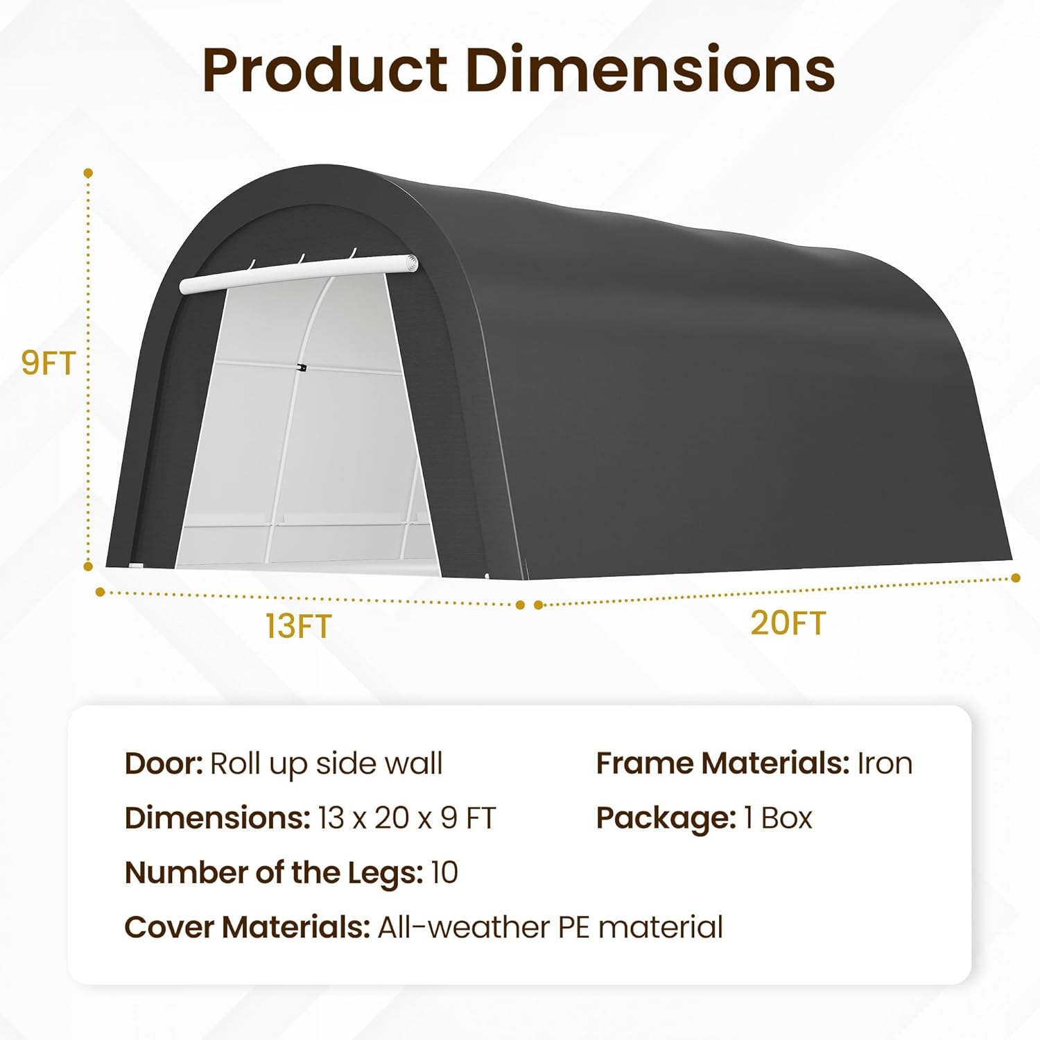 - DOMED CARPORT: 12x25 ft car port dome design prevents water and snow buildup, reducing structural stress and enhancing durability. The sleek, curved shape of the carport is more attractive and provides more interior space and better air circulation