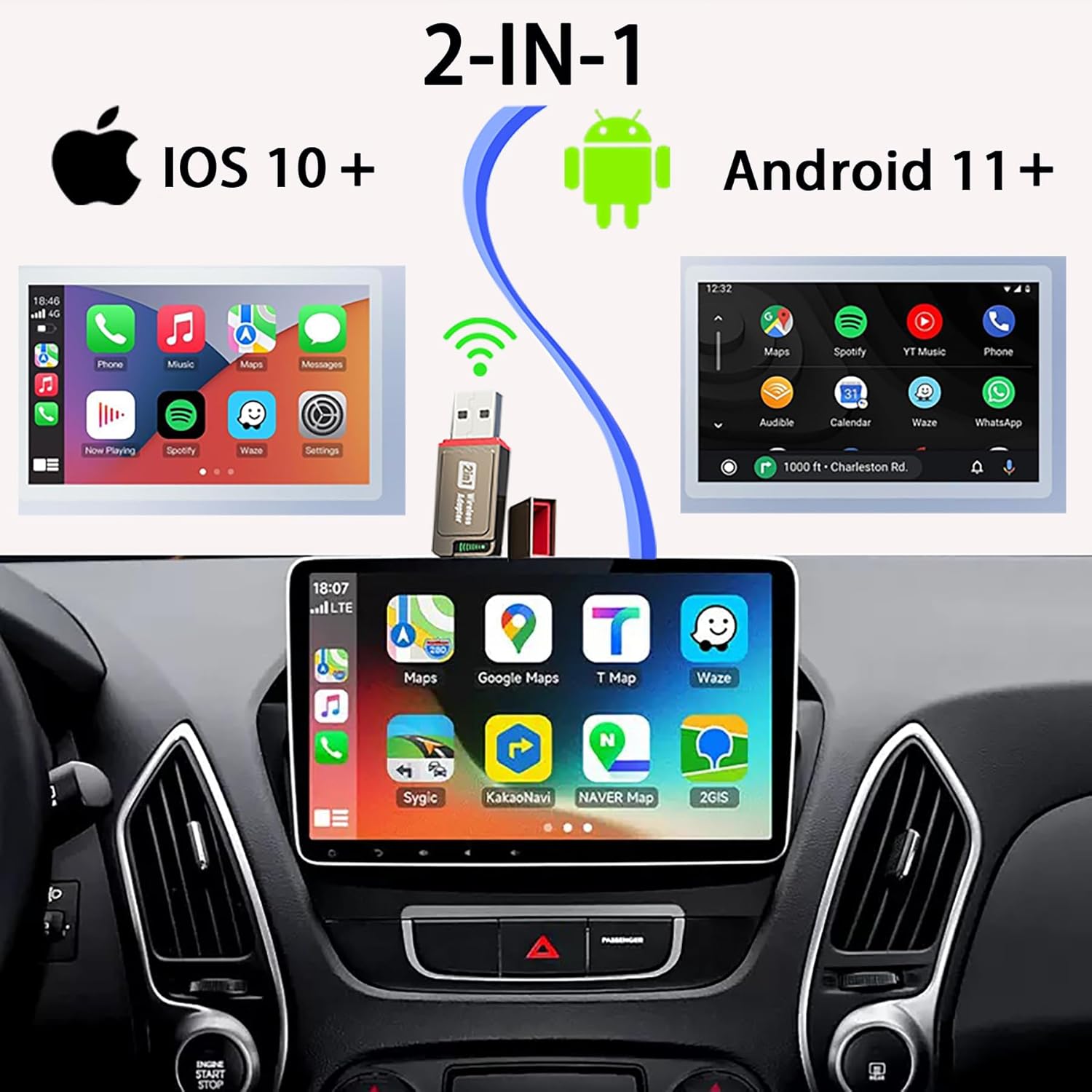 - 🚗【Wired to Wireless Upgrade】 Turn your car's original wired CarPlay or Android Auto into wireless in seconds. Just plug into the car's USB port, connect your phone via Bluetooth, and enjoy cable-free navigation, music, and calls—no complicated setup required.