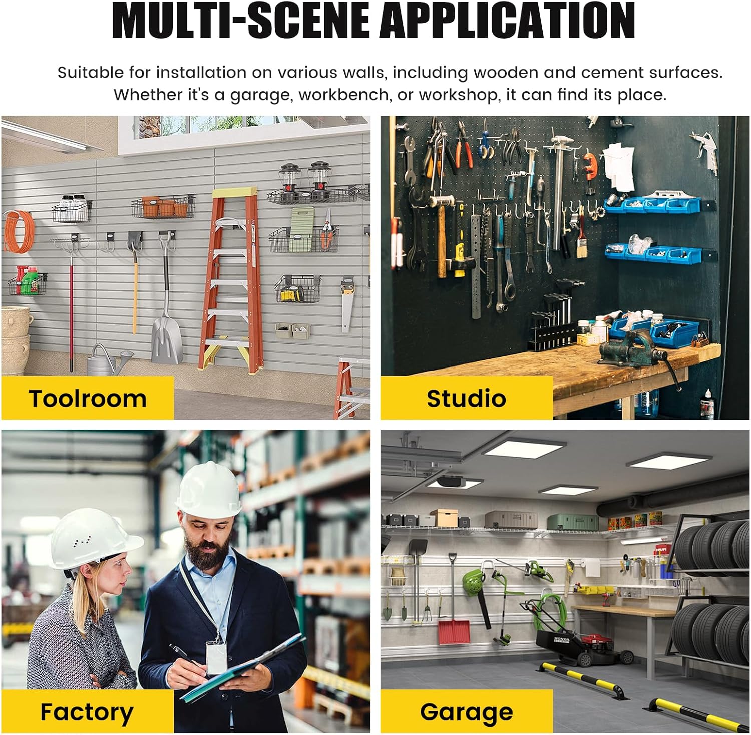 - [Easy Installation] - Tool organization and storage is removable design, and you can assemble a perfect tool rack wall mount in just a few minutes. The tool organizer can be installed on a tile, brick, concrete, or wood wall.