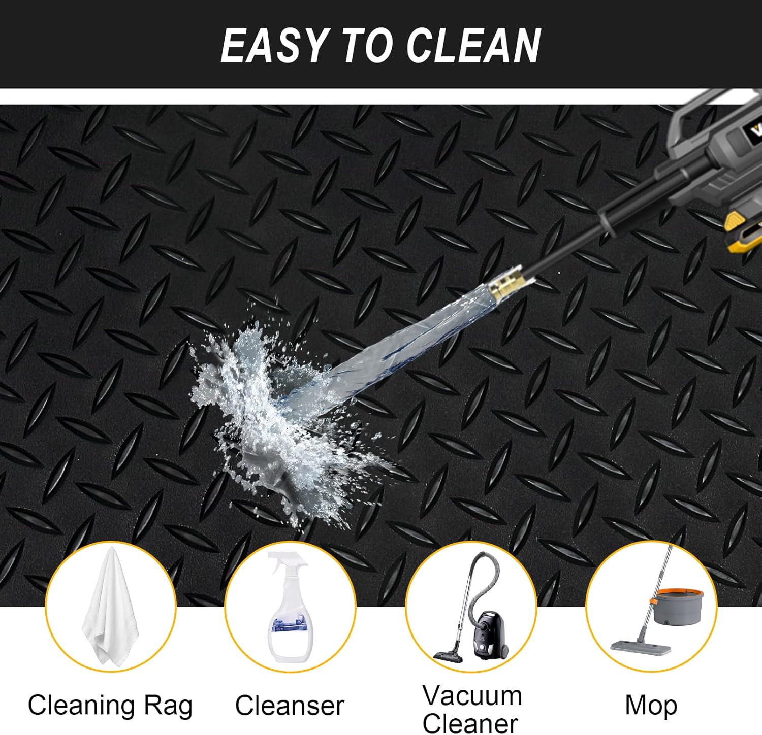 - Anti-Slip Design: The under car mat engineered with a diamond plate texture for superior slip resistance, ensuring safety for both foot traffic and parked vehicles even in damp conditions.In order to make the mat does not slip, you can use double-sided tape on all sides(not included in the package)