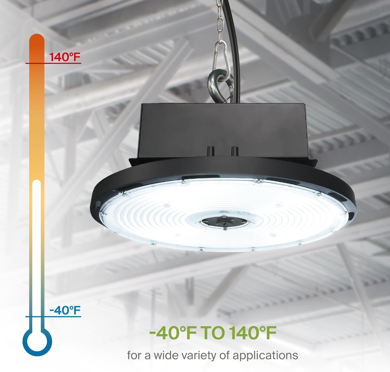 ASD LED High Bay UFO Light Fixture, Commercial Shop Lighting | Dimmable, IP69K Waterproof, DLC Premium, UL Listed | 400W 58600LM 5000K 277-480V | Warehouse, Garage, Workshop, Barn Lamp | Black