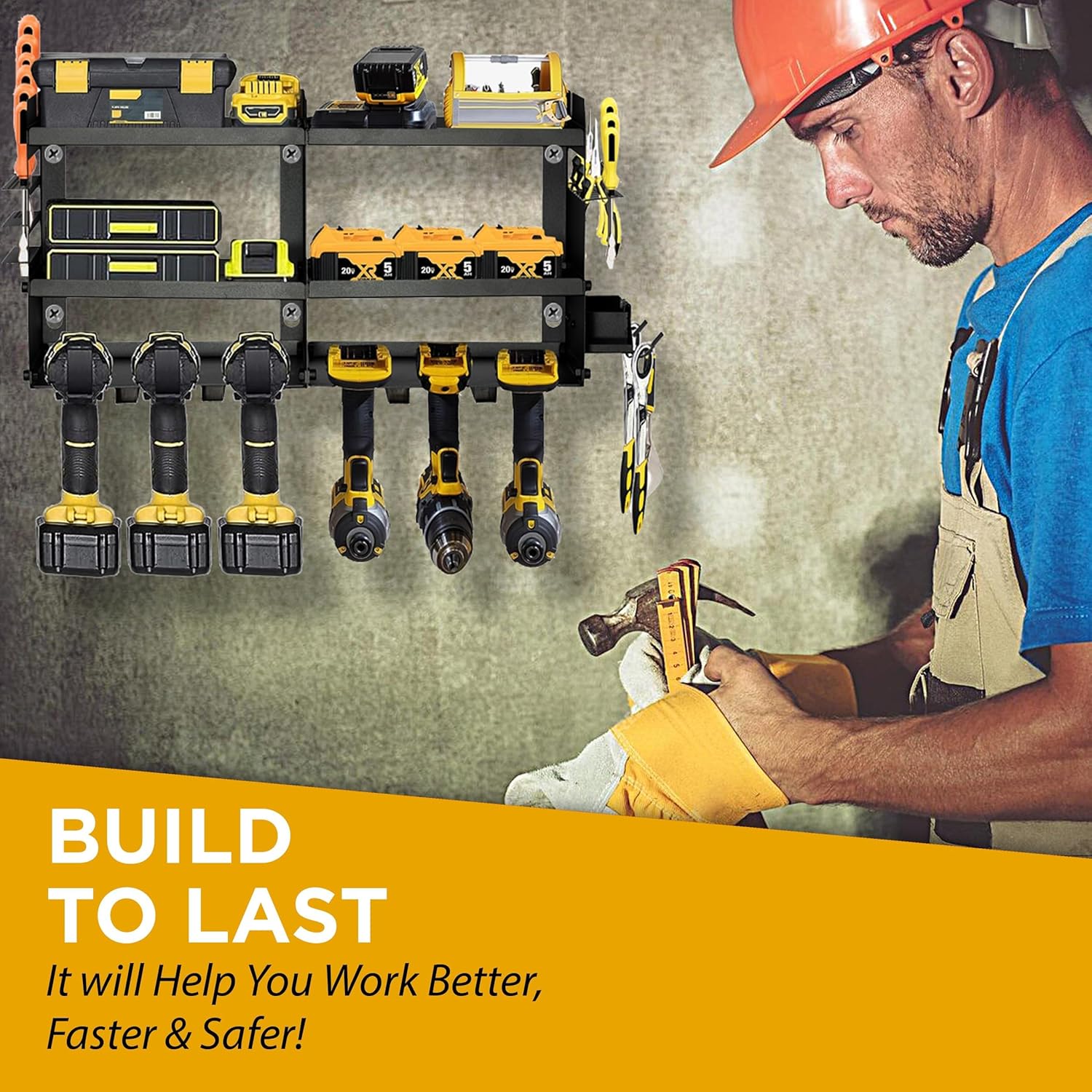 - Heavy-Duty Tool Shelf for Garage with Battery Charging Station Space: Designed to hold heavy tools securely with strong steel screws, this organizer also includes space to store and charge your tool batteries.