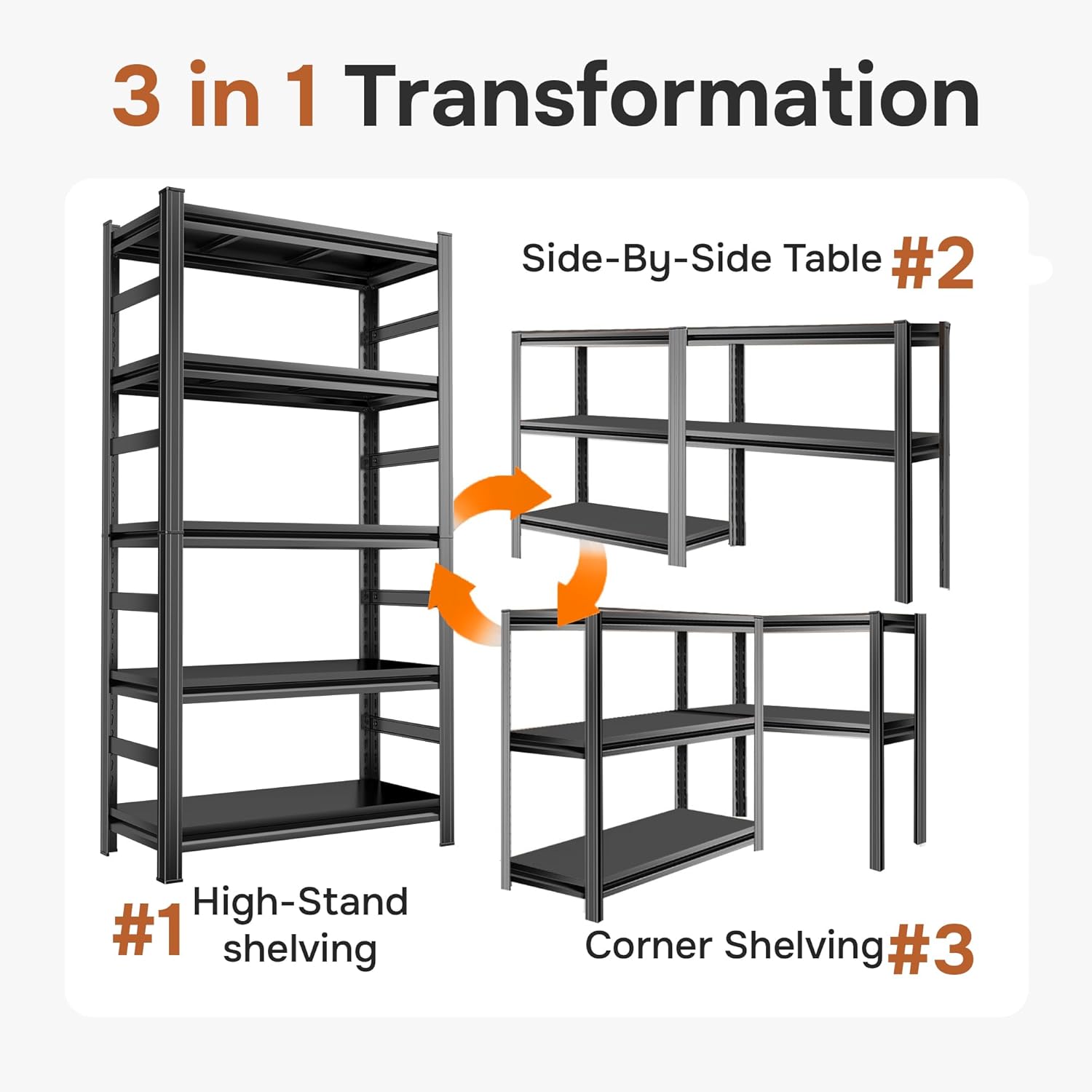 - π VERSATILE 2-IN-1 MODULAR DESIGN β Get two units for the price of one! Use it as a single, towering 71" tall shelving unit to maximize vertical space. Or, in just a few seconds, split it into two independent, workbench-height 35.5" racks. This incredible flexibility makes it the ultimate solution for any space: your garage, warehouse, pantry, kitchen, or even as a retail display. It adapts to your needs, not the other way around.