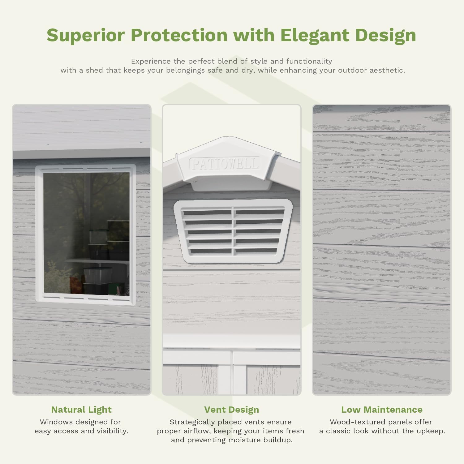 Patiowell 6x6 FT Outdoor Storage Shed with Floor - Resin Tool Shed with Lockable Door & 2 Windows, Easy Assembly for Garden, Backyard, Lawn Equipment, Light Grey