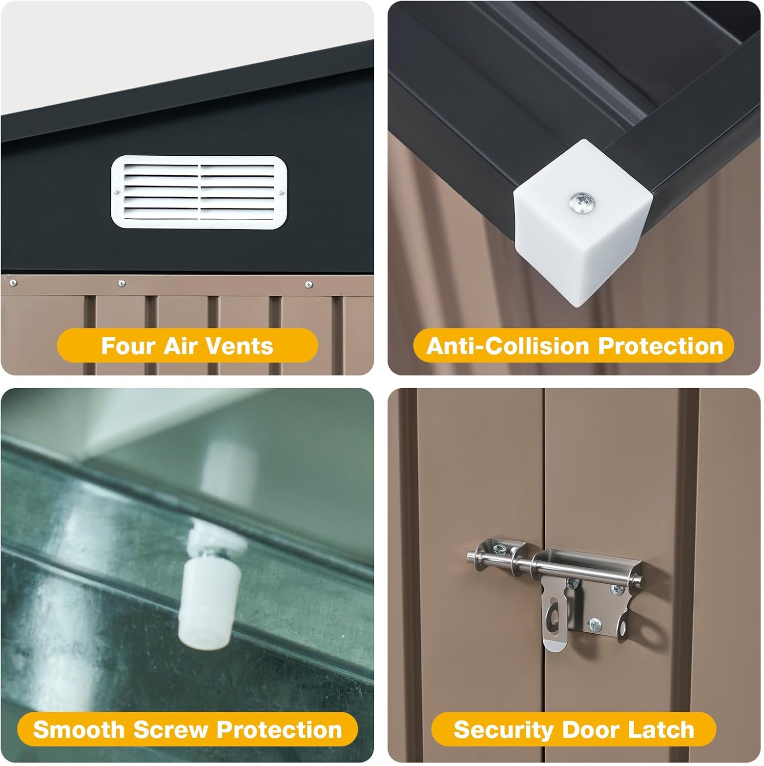 - Durable Galvanized Steel Construction: Crafted with thick galvanized steel panels and reinforced structural engineering, this metal shed is designed for long-lasting performance and enhanced rust resistance. The anti-rust powder-coated surface provides protection against harsh weather, supporting reliable outdoor storage with reduced risk of corrosion, making it a sturdy storage solution for homeowners.