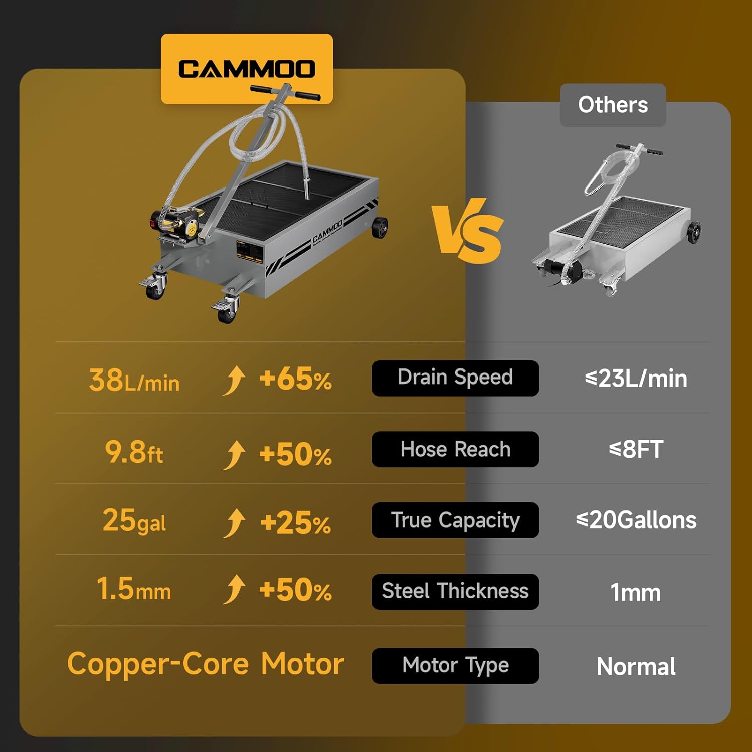 - Optimized Copper Motor:The copper motor features a 110V power supply and 200W maximum output, tipping the scales at 610.5g to stand heavier and more robust than standard motors in oil pans. This added heft translates to stronger performance: it delivers a powerful 38L/min flow rate, draining oil 65% faster to help finish jobs in less time. For busy shops, and weekend DIYers alike, this means boosted efficiency, reduced labor time, and smoother workflow—whether tackling back-to-back oil changes with oil pans or squeezing in a project at home. It is engineered to make every task quicker, easier, and more reliable.