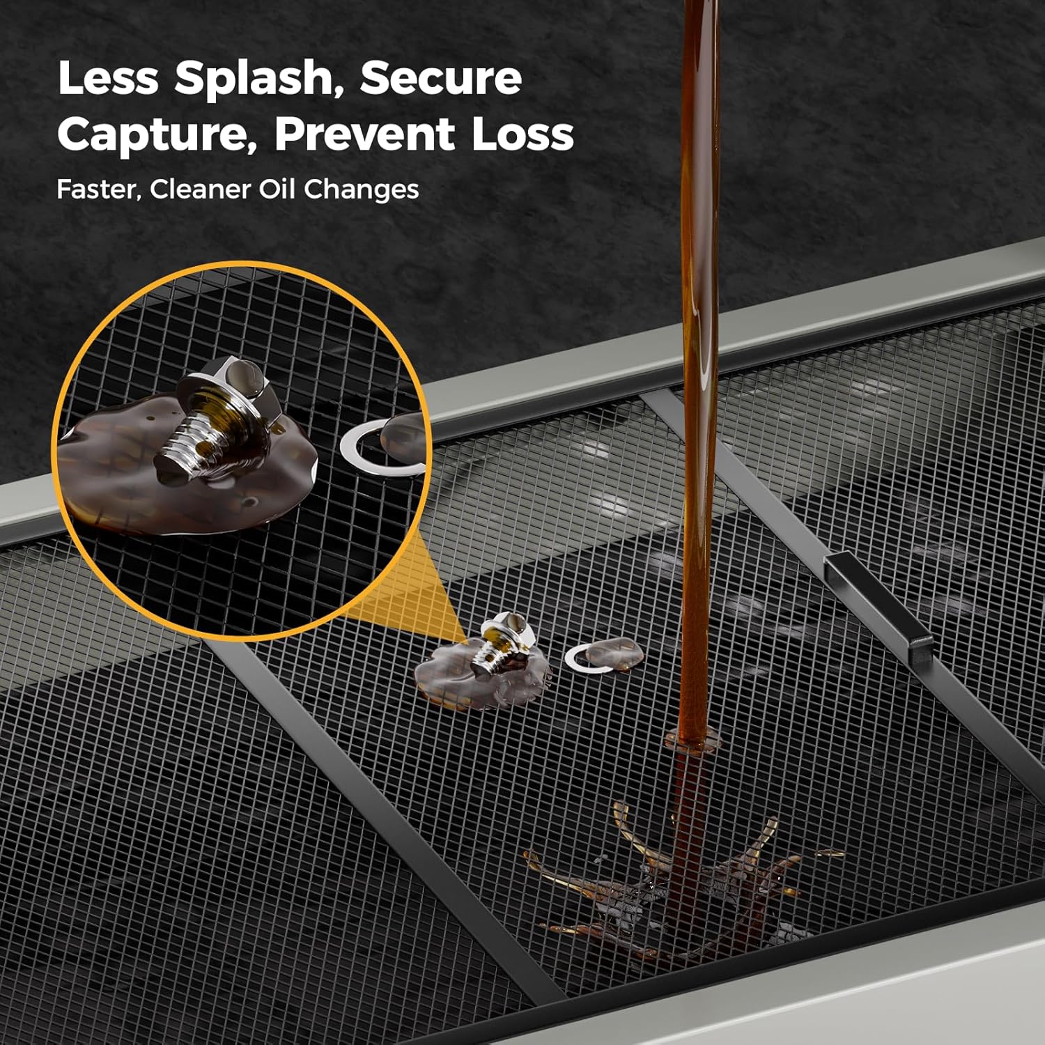 - User-Friendly Design:The 32.8× 16.9" filter screen with smaller holes on oil drain pans minimizes splatters and catches dropped parts, keeping floors clean and saving time. Its 1.2 mm metal frame resists warping, ensuring durability for oil drain pans. The T-handle folds from 40–180°, collapses flat for storage, and reaches easily under vehicles—perfect for maneuvering oil drain pans. Two fixed 4-inch wheels and two 3-inch swivel wheels with brakes ensure stable, secure positioning for oil drain pans—even on slopes. Together, these elements make every oil change with oil drain pans quicker, neater, and hassle-free.