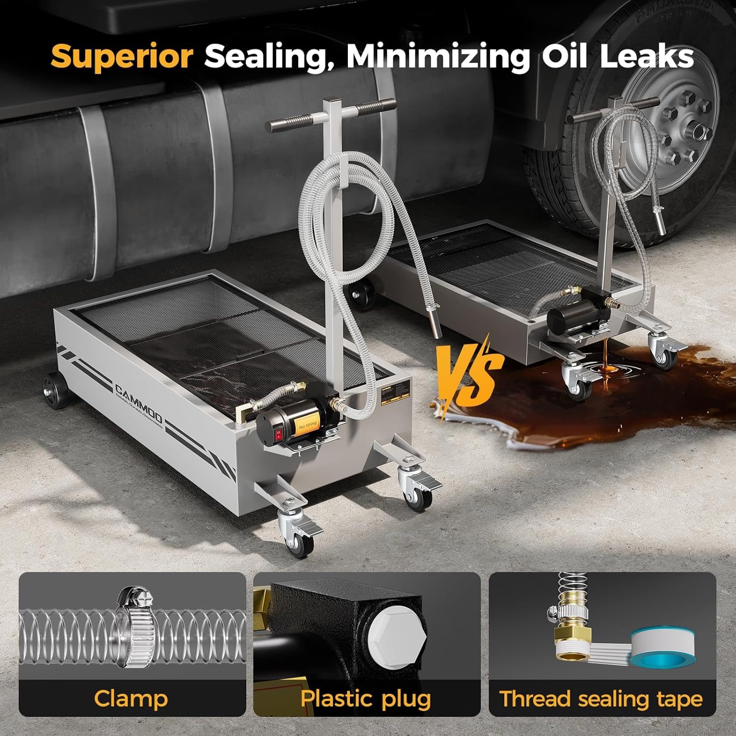 - Heavy-Duty Construction:The electric oil change pan has 1.5 mm carbon-steel walls and is 0.5 mm thicker than standard oil change pans, so it resists daily wear, handles heavy hydraulic loads without warping, and stands up to rough movement in busy shops. It features a precision powder-coat finish that fights corrosion, stays rust-free, and keeps the surface looking sharp. Finely welded seams boost load capacity and eliminate leak risks, and each unit is water-tested before shipment to ensure it is a long-lasting, leak-proof tool for shops, fleets, and DIYers.