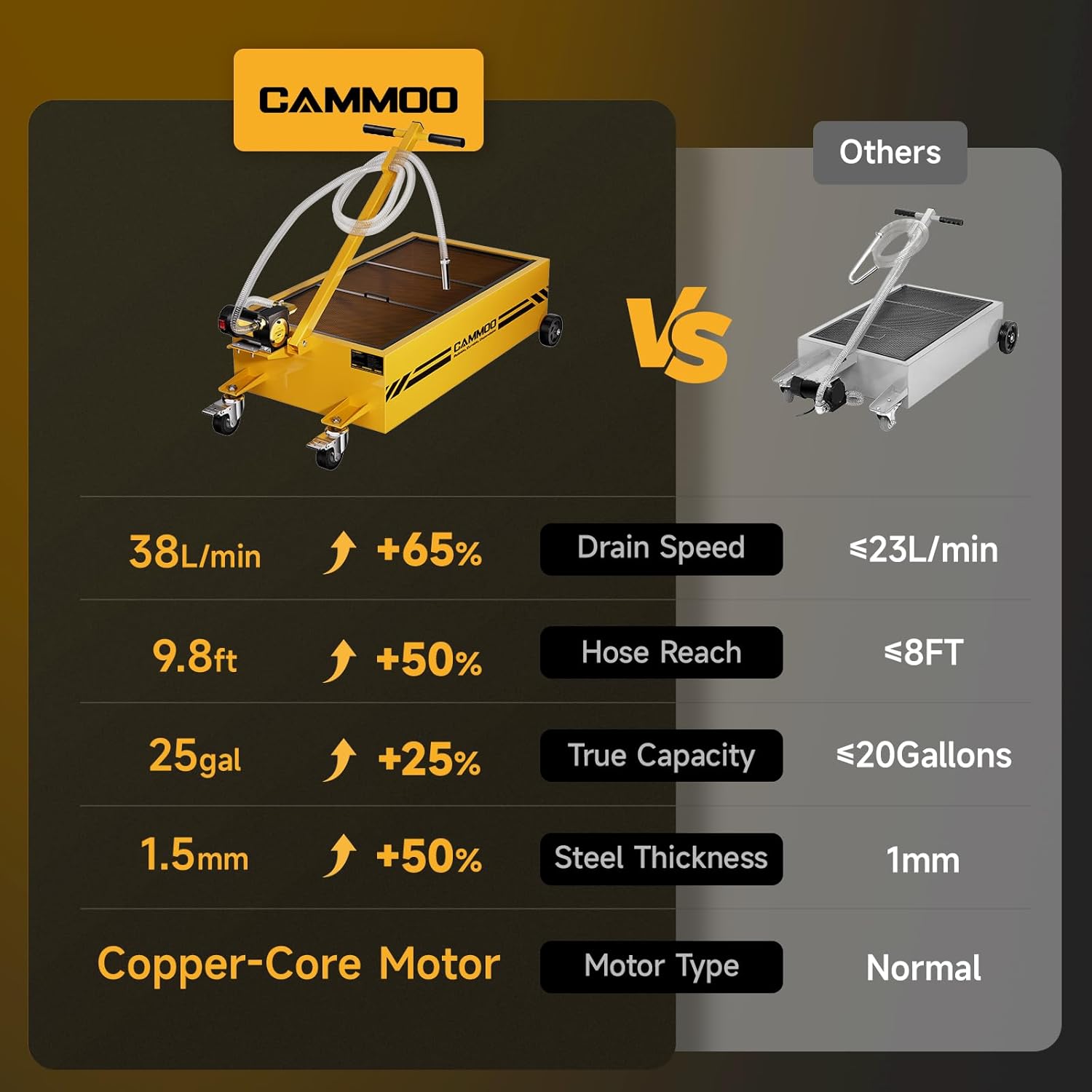 - Optimized Copper Motor:The copper motor features a 110V power supply and 200W maximum output, tipping the scales at 610.5g to stand heavier and more robust than standard motors in oil pans. This added heft translates to stronger performance: it delivers a powerful 38L/min flow rate, draining oil 65% faster to help finish jobs in less time. For busy shops, and weekend DIYers alike, this means boosted efficiency, reduced labor time, and smoother workflow—whether tackling back-to-back oil changes with oil pans or squeezing in a project at home. It is engineered to make every task quicker, easier, and more reliable.